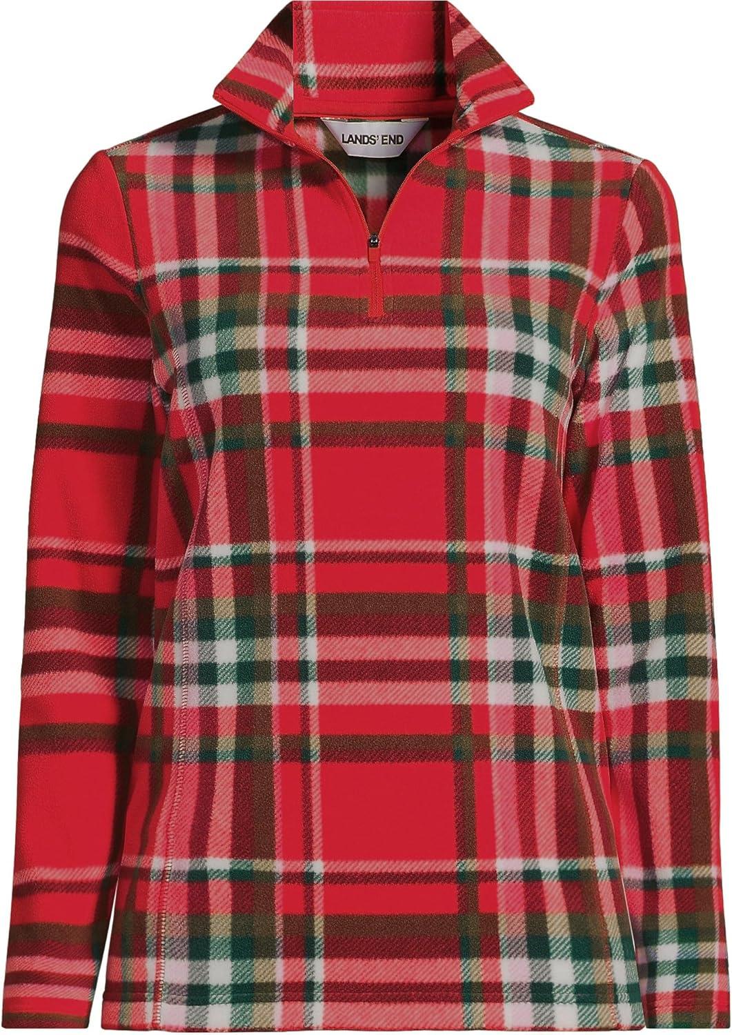 Lands’ End Anyweather Fleece Quarter Zip Pullover(Compass Red Holiday Plaid)