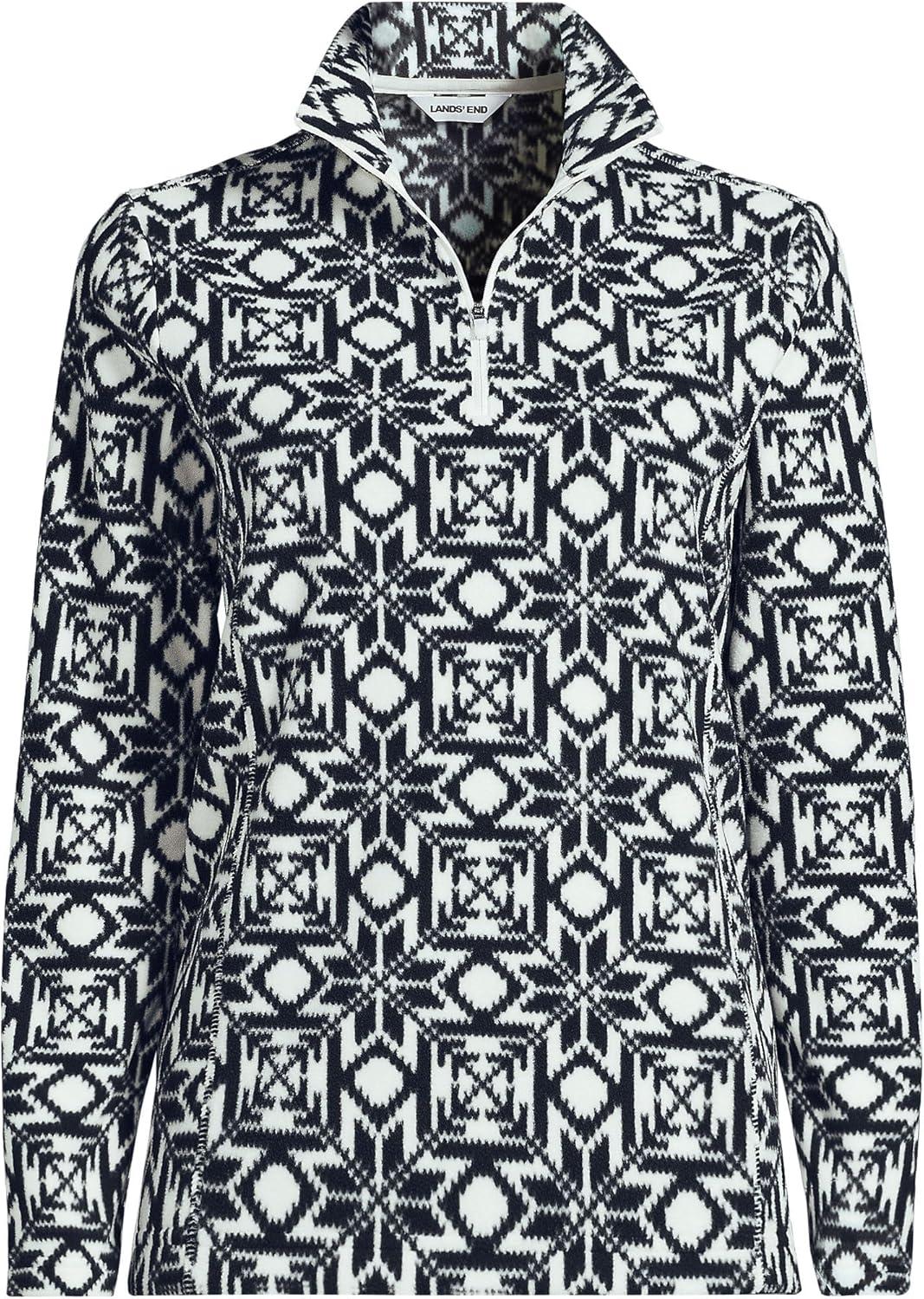 Lands’ End Anyweather Fleece Quarter Zip Pullover(Ivory/Black Snowflake)