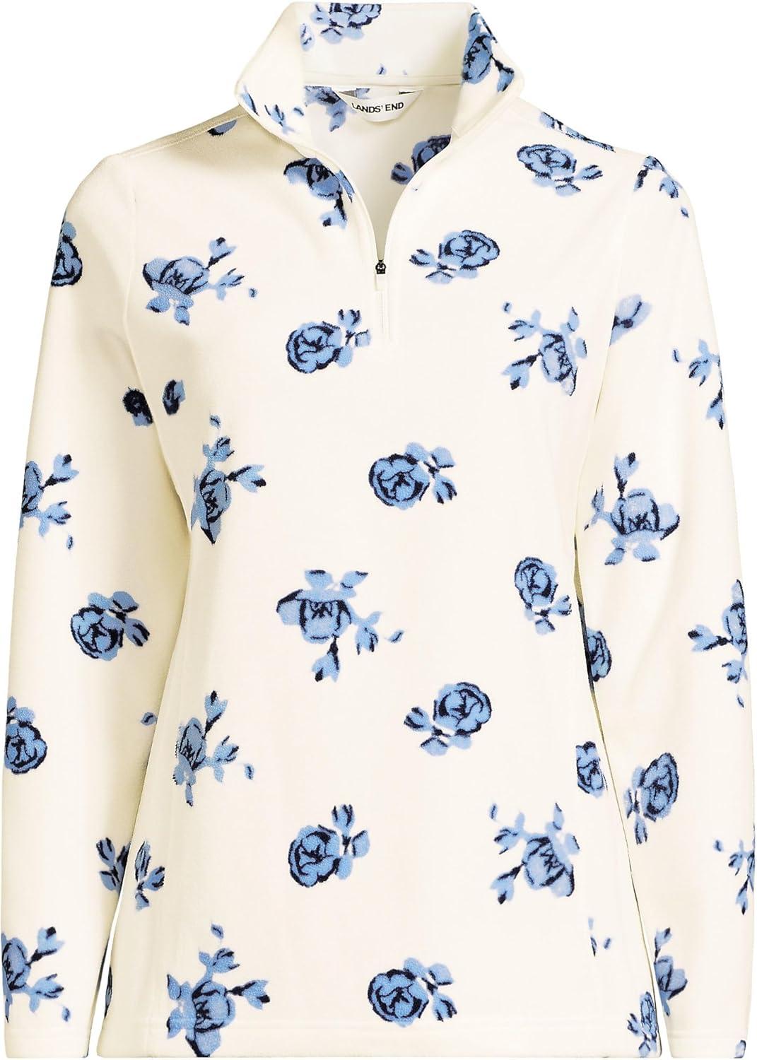Lands’ End Anyweather Fleece Quarter Zip Pullover(Ivory/Clear Blue Tossed Floral)