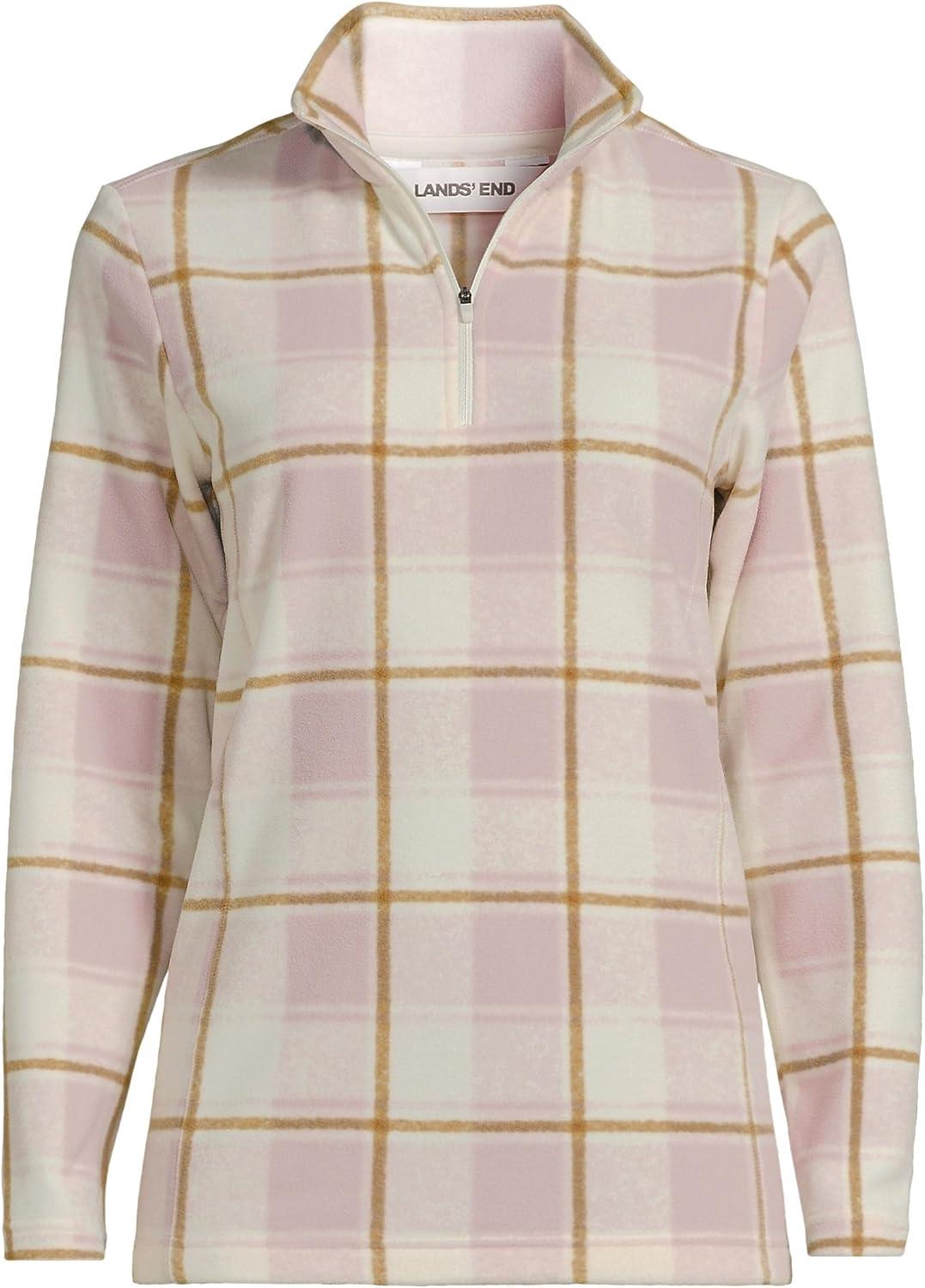 Lands’ End Anyweather Fleece Quarter Zip Pullover(Light Mauve Buff Check)