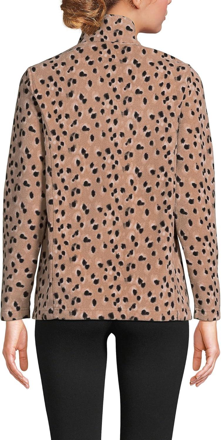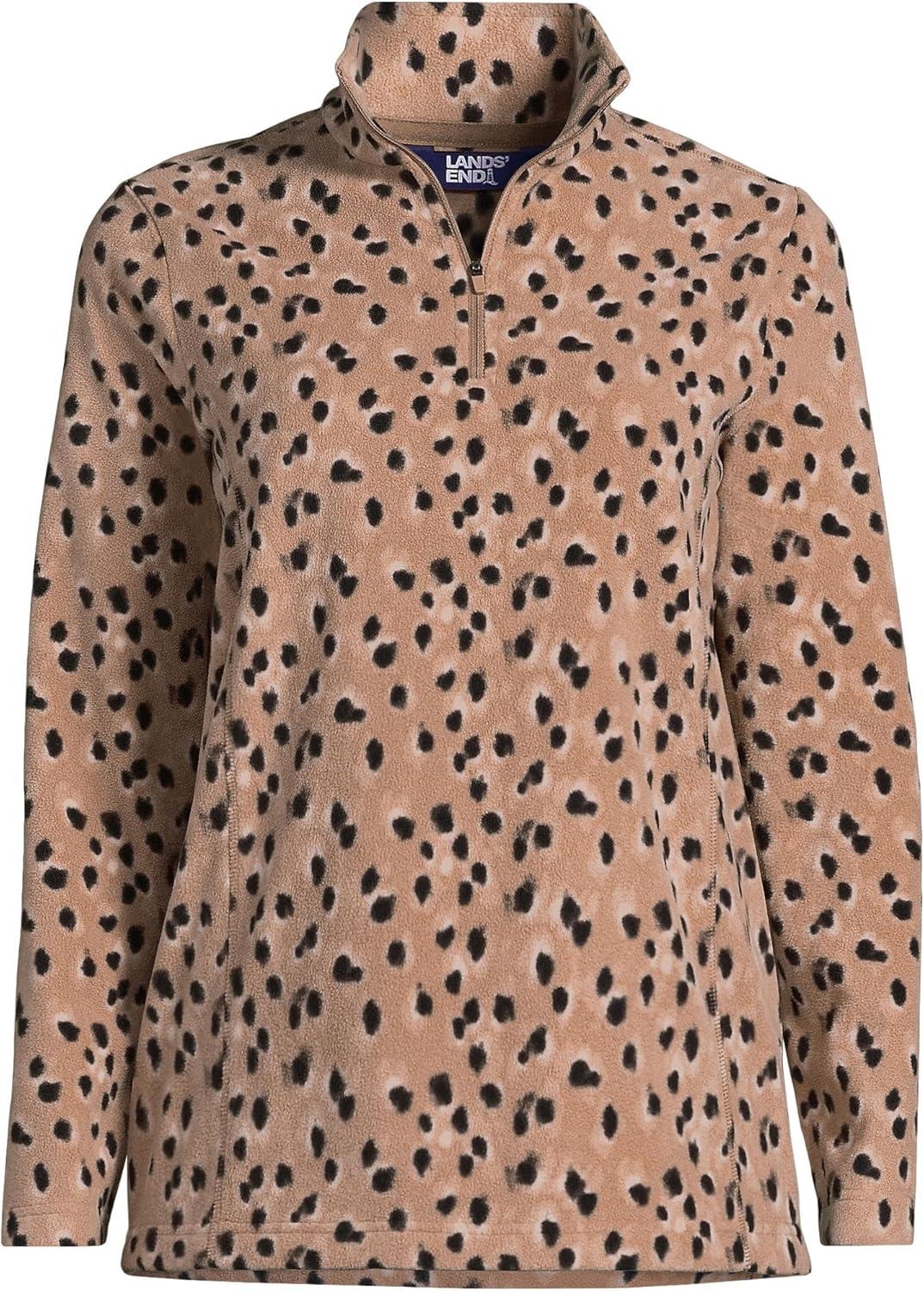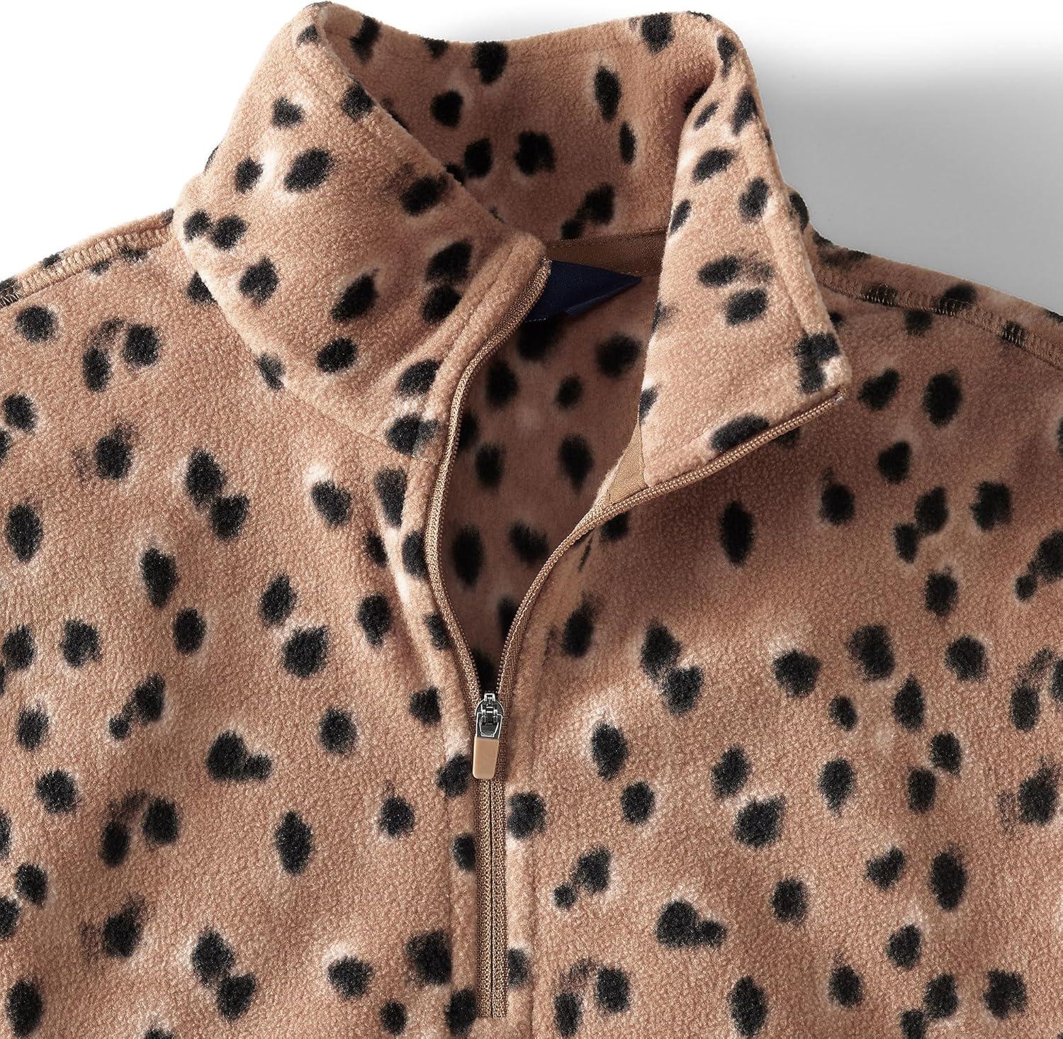 Lands’ End Anyweather Fleece Quarter Zip Pullover(Warm Tawny Brown Animal Spots)