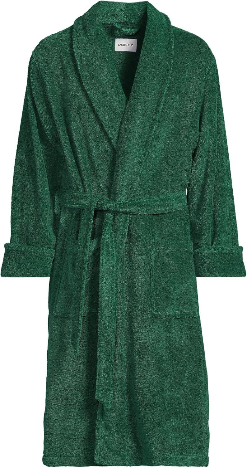 Lands’ End Men’s Full-Length Turkish Cotton Terry Bathrobe – 55″ Length | Plush, Absorbent, 2 Pockets, Spa Comfort(Light Emeralds)