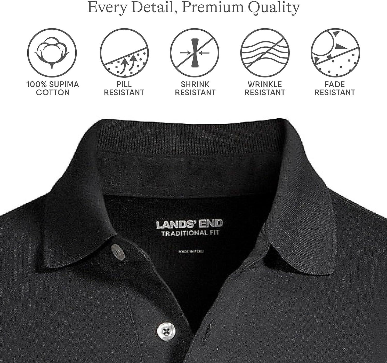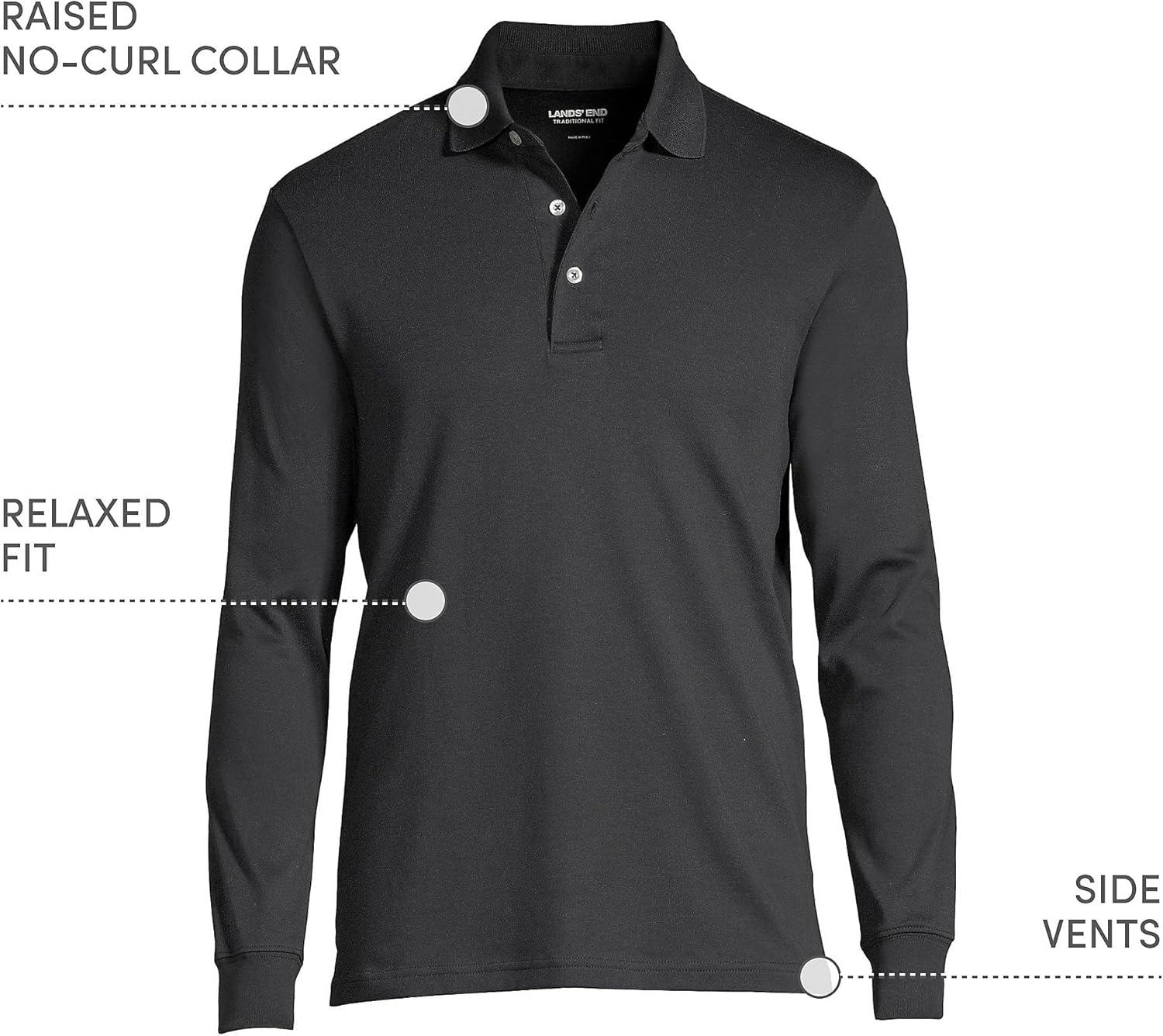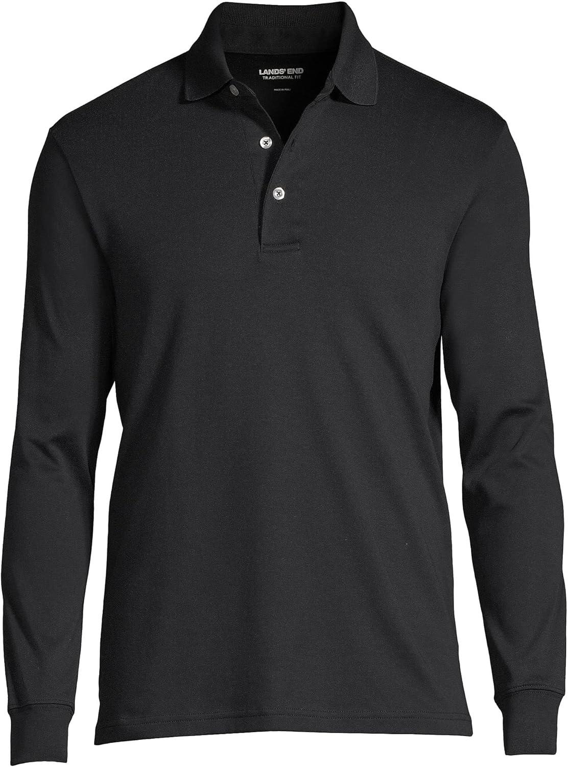 Lands’ End Men’s Long Sleeve American-Grown Supima Cotton Polo Shirt(Black)
