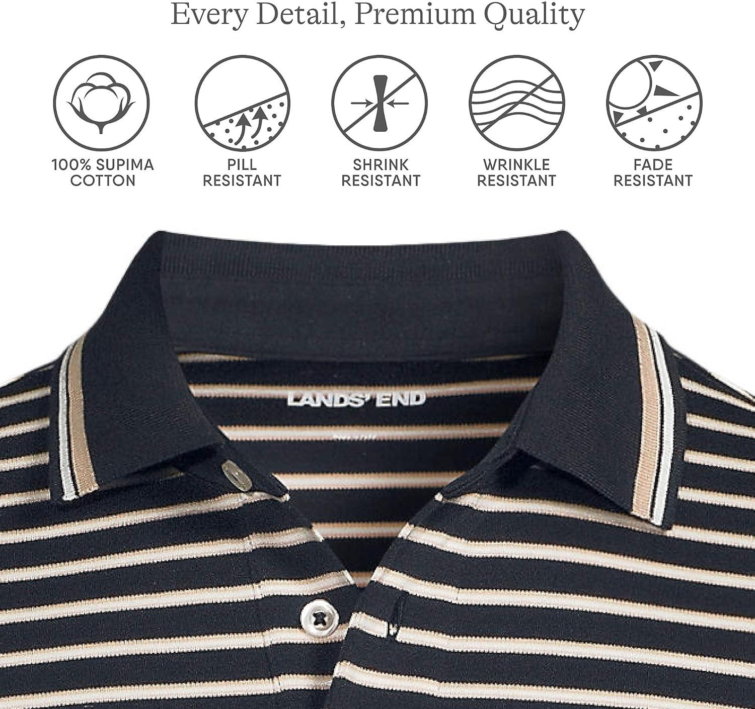 Lands’ End Men’s Long Sleeve American-Grown Supima Cotton Polo Shirt(Black/Warm Almond Stripe)
