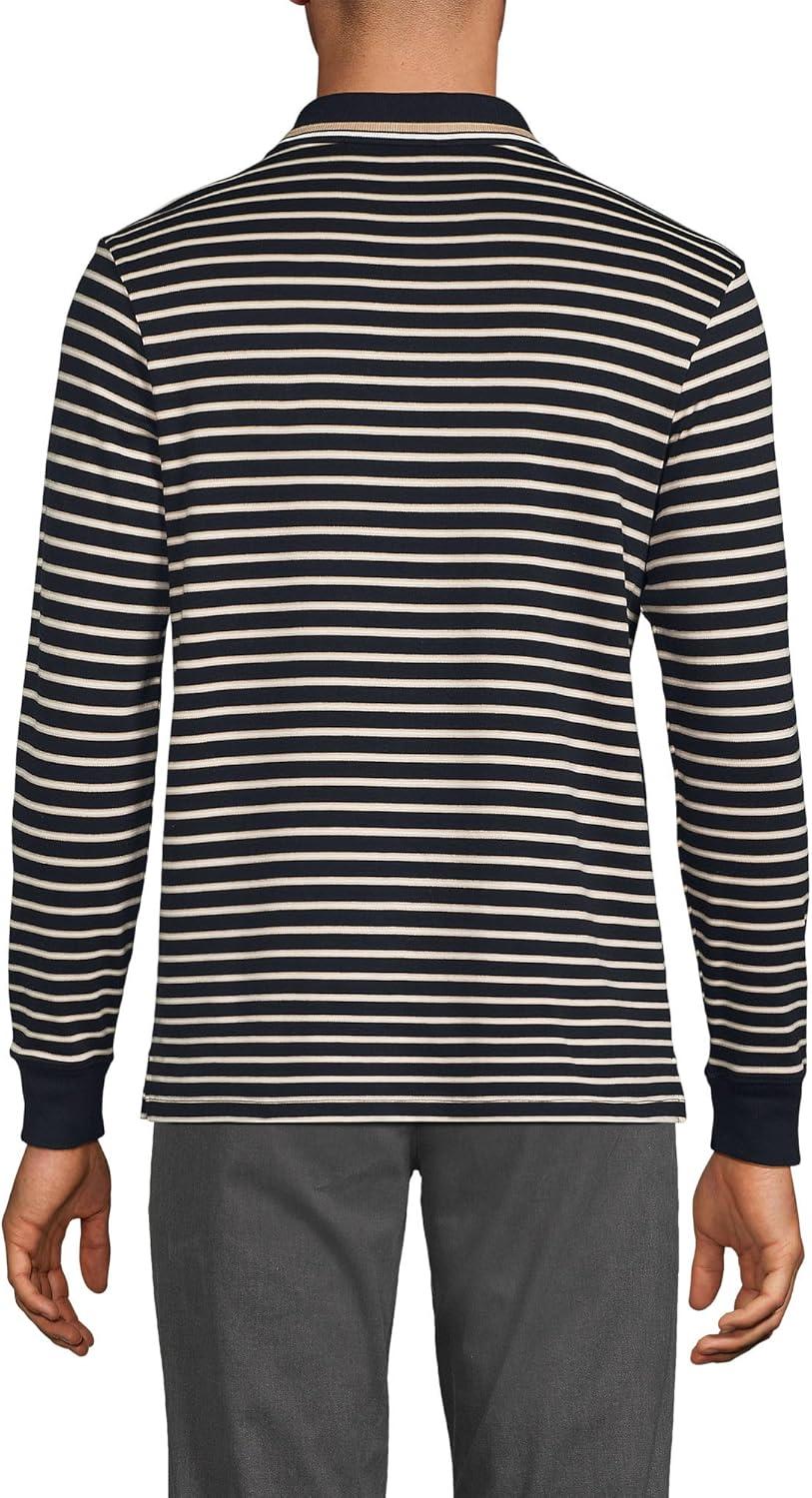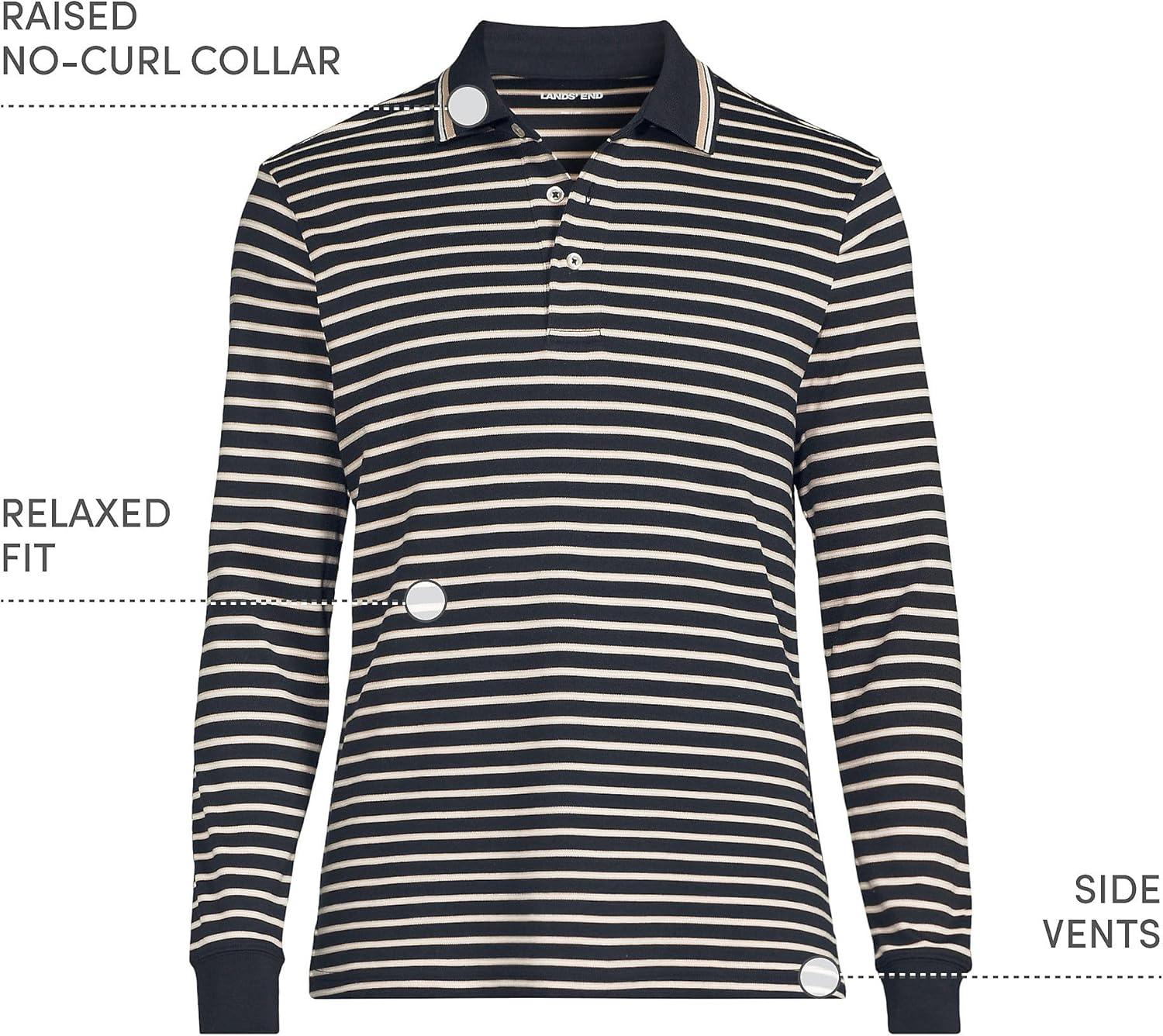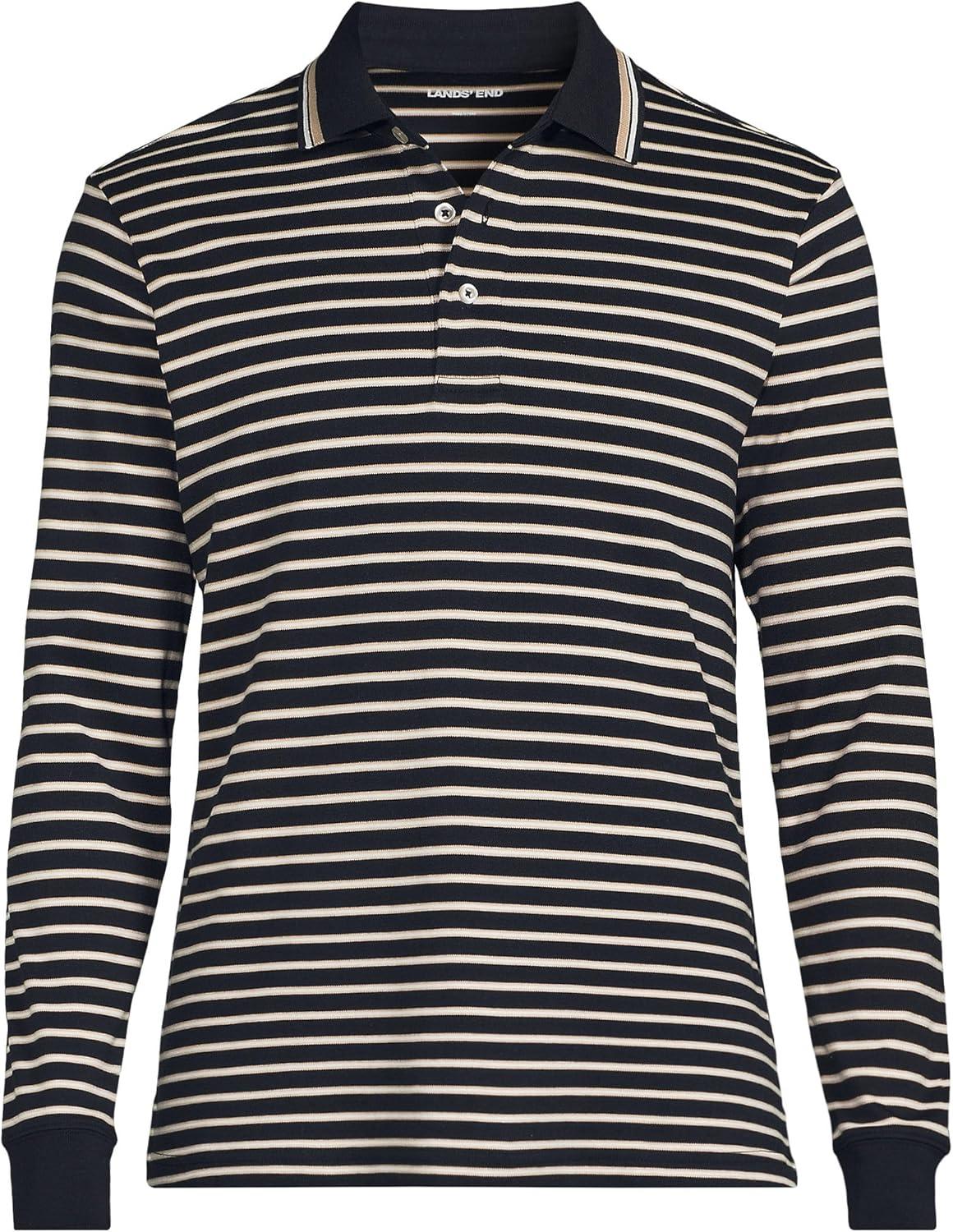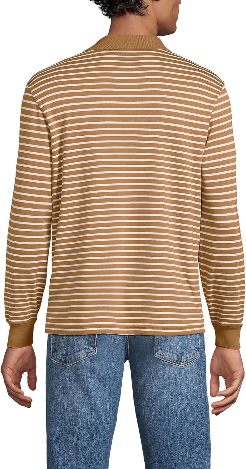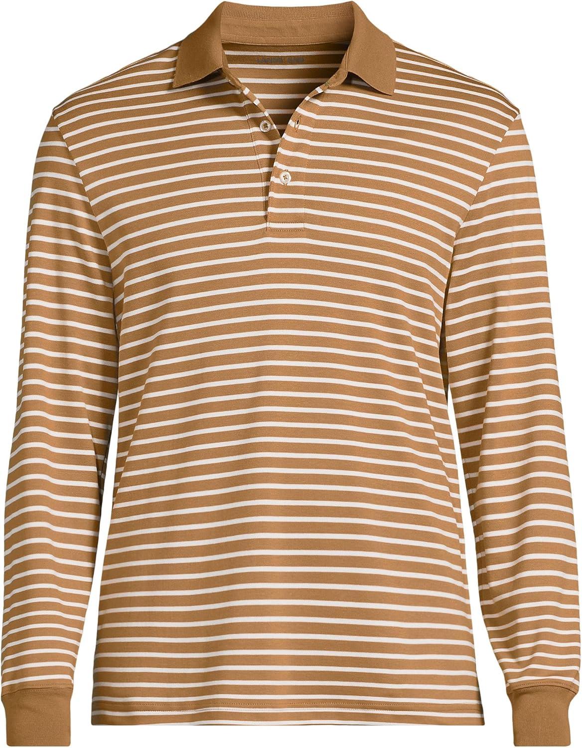 Lands’ End Men’s Long Sleeve American-Grown Supima Cotton Polo Shirt(Canyon Camel Stripe)