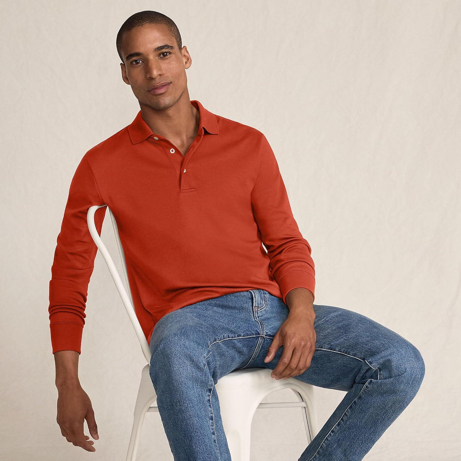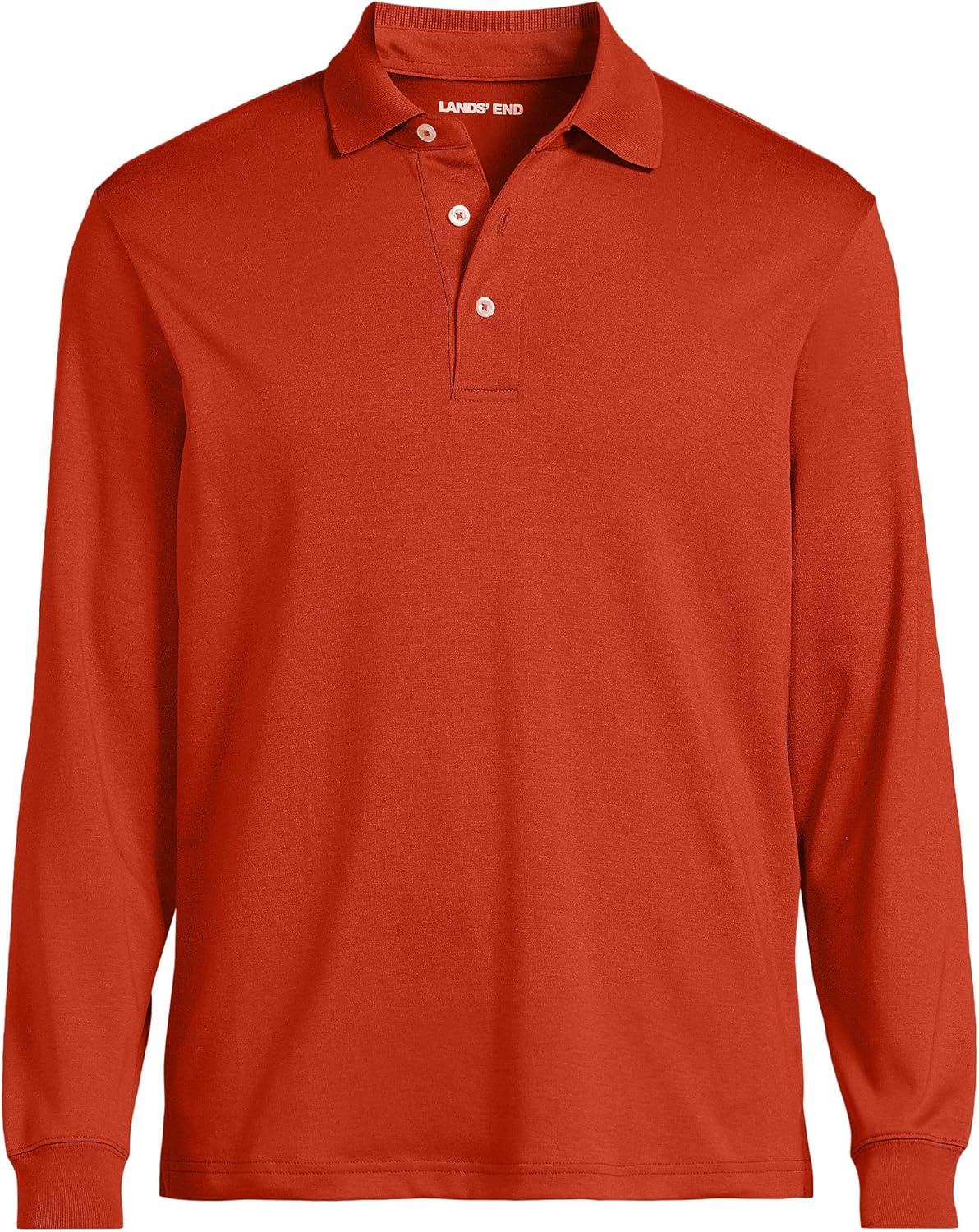 Lands’ End Men’s Long Sleeve American-Grown Supima Cotton Polo Shirt(Bourbon)