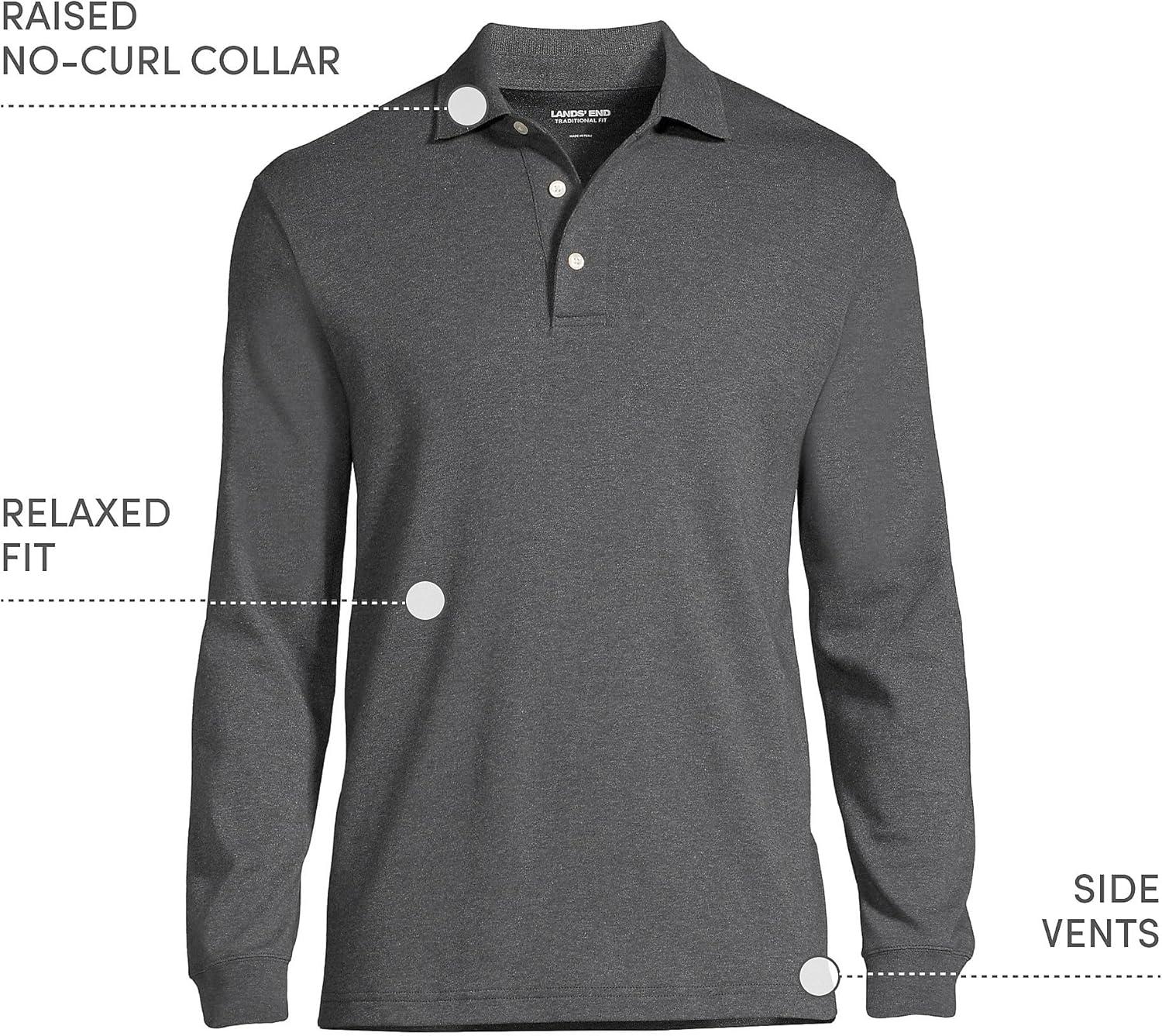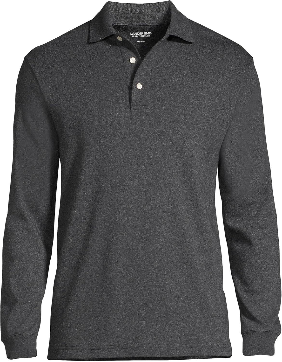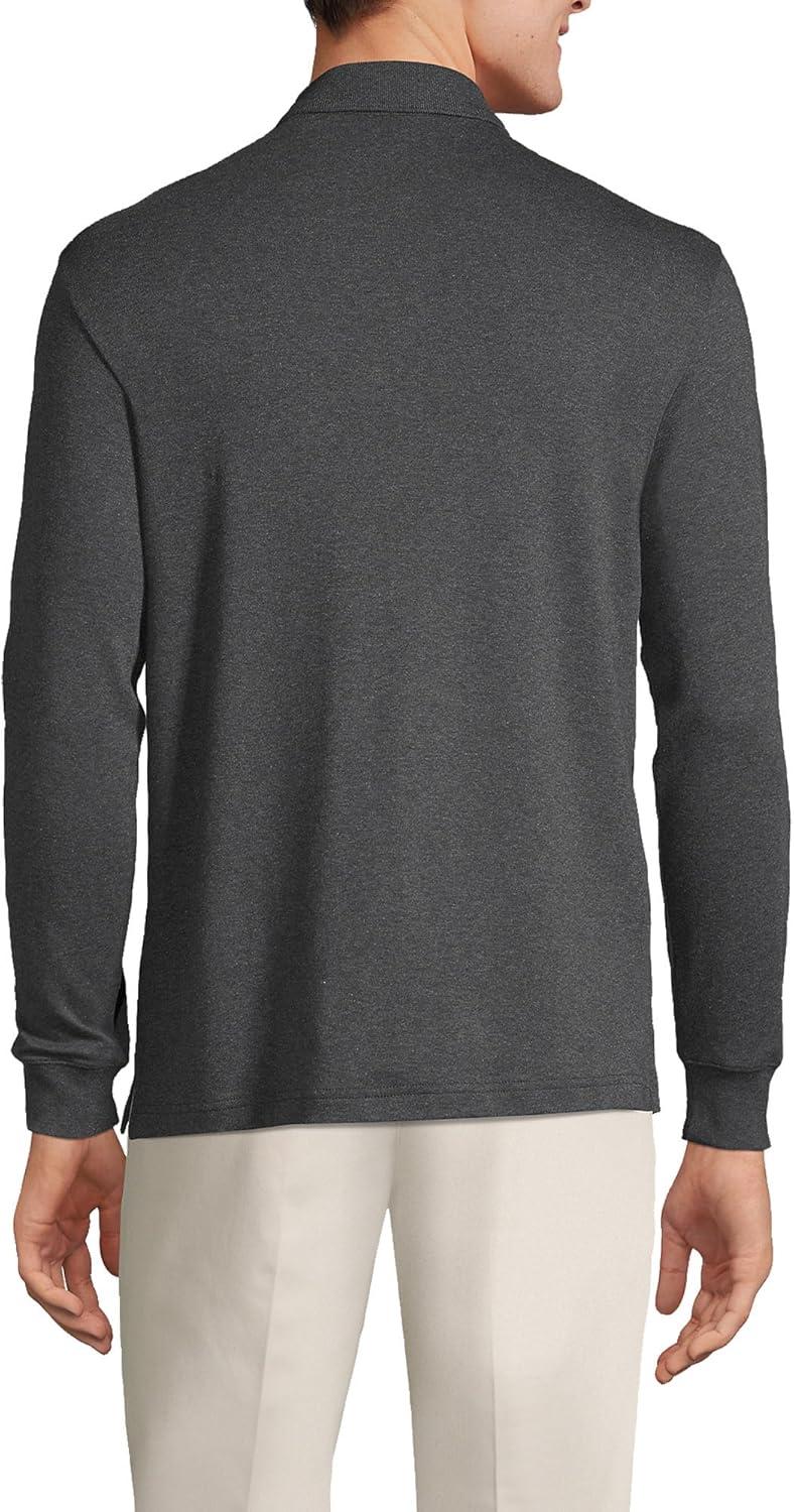 Lands’ End Men’s Long Sleeve American-Grown Supima Cotton Polo Shirt(Dark Charcoal Heather)