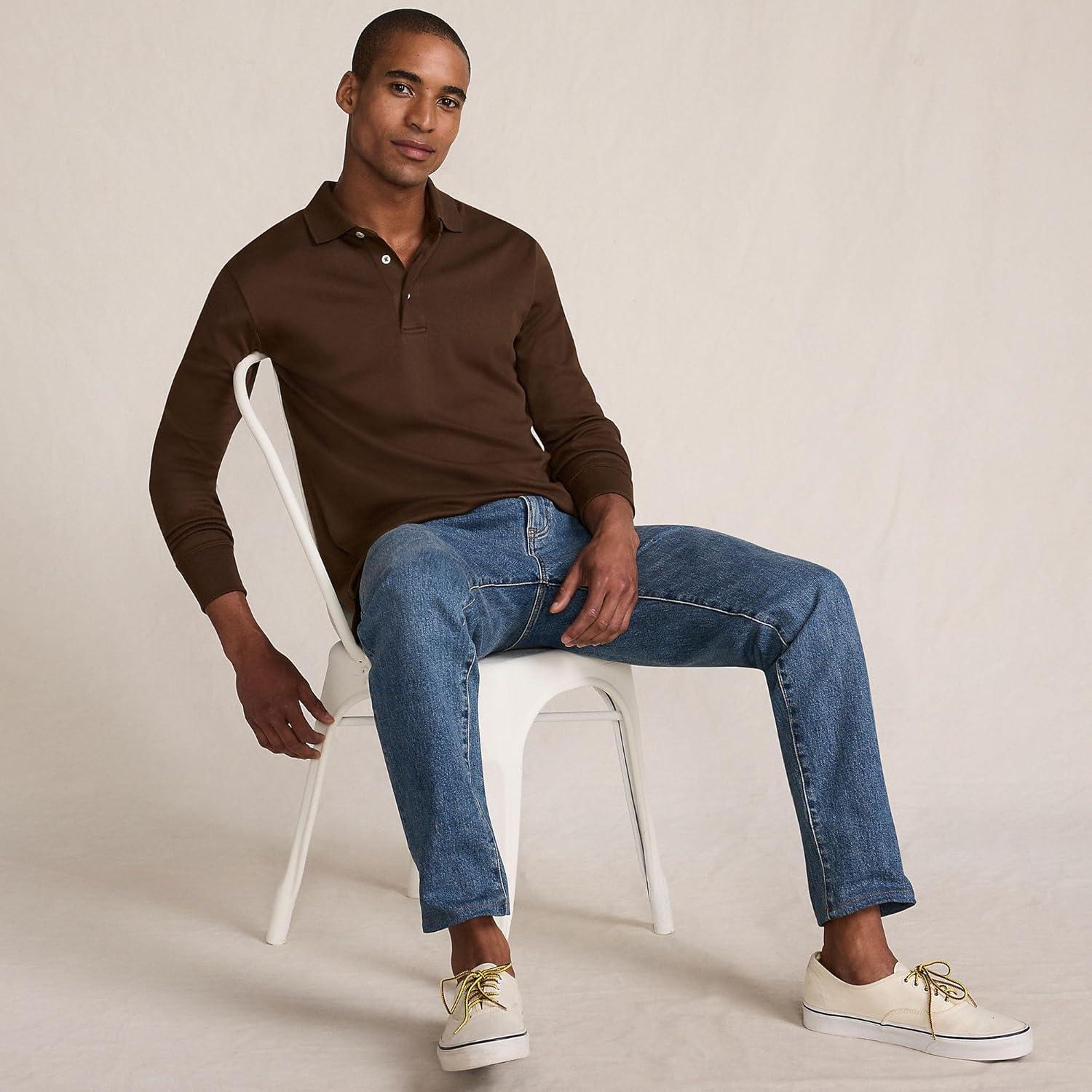 Lands’ End Men’s Long Sleeve American-Grown Supima Cotton Polo Shirt(Dark Walnut Brown)