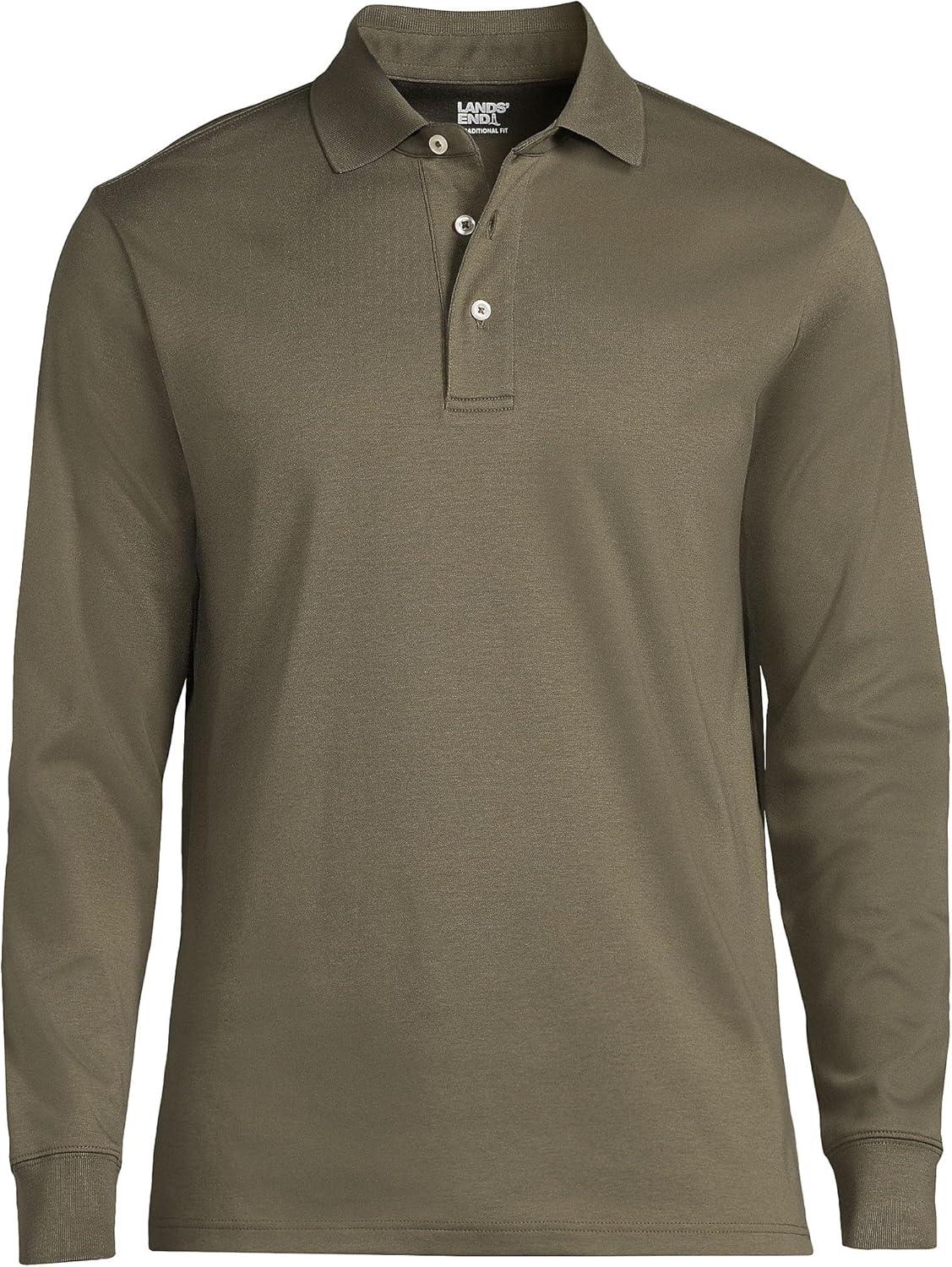 Lands’ End Men’s Long Sleeve American-Grown Supima Cotton Polo Shirt(Forest Moss)