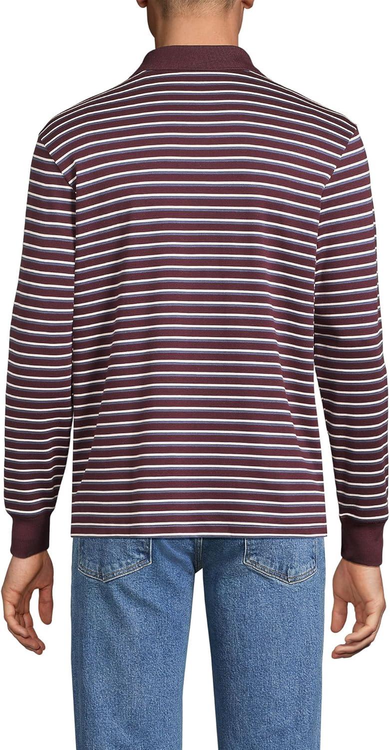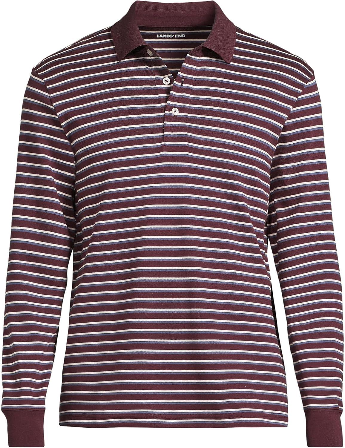 Lands’ End Men’s Long Sleeve American-Grown Supima Cotton Polo Shirt(Lush Burgundy/Blue Stripe)