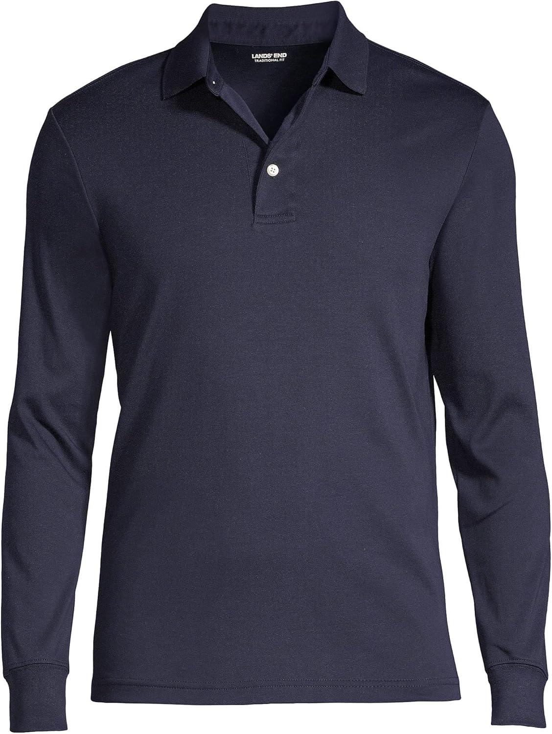 Lands’ End Men’s Long Sleeve American-Grown Supima Cotton Polo Shirt(Radiant Navy)