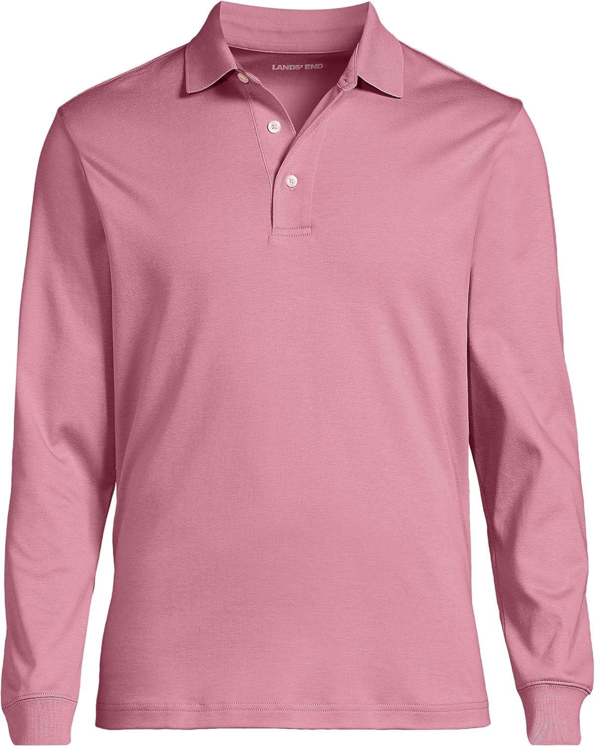 Lands’ End Men’s Long Sleeve American-Grown Supima Cotton Polo Shirt(Soft English Rose)