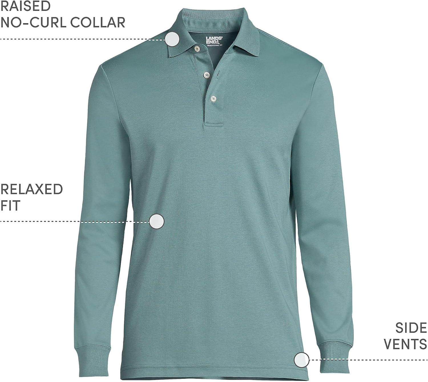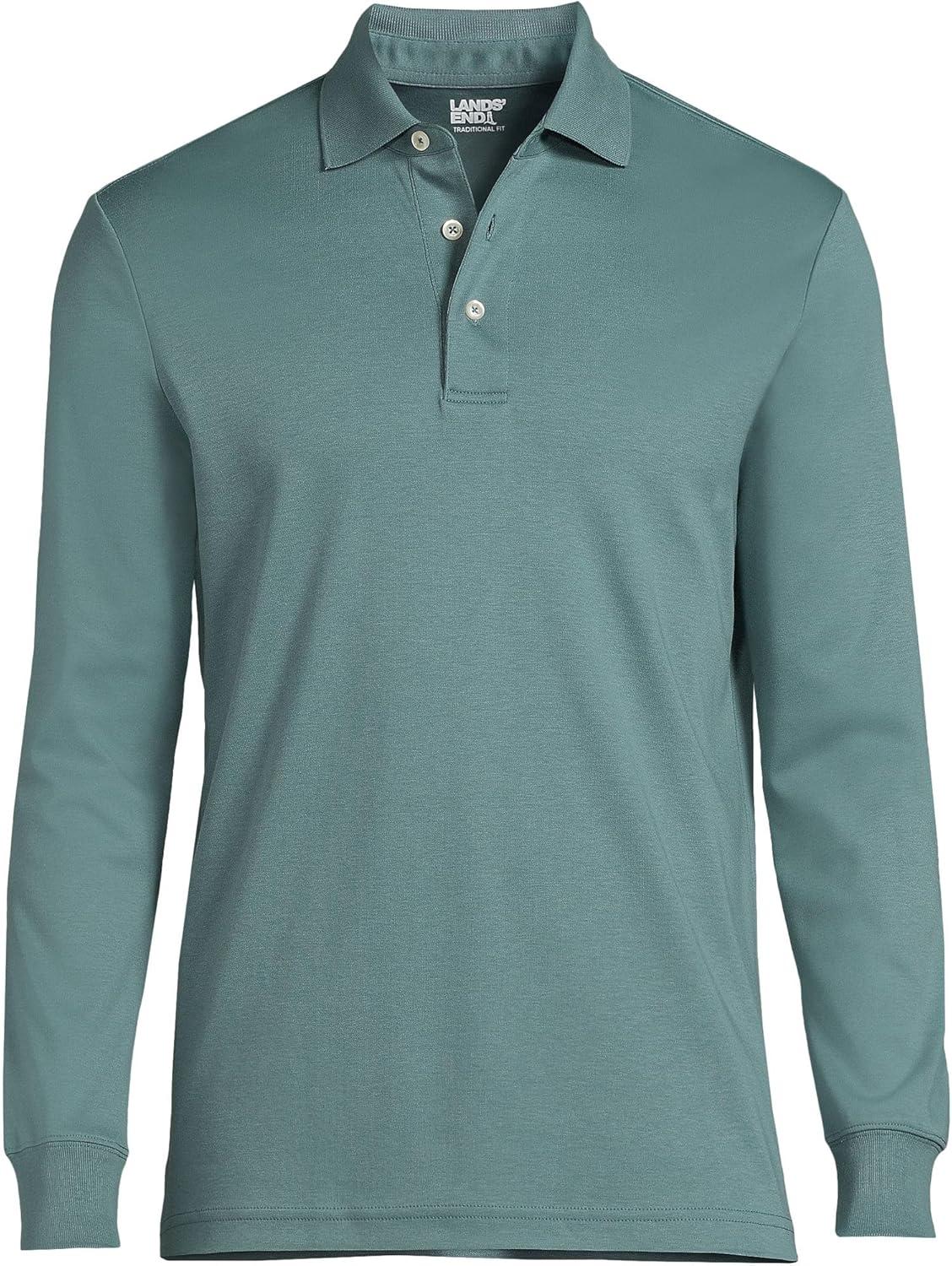Lands’ End Men’s Long Sleeve American-Grown Supima Cotton Polo Shirt(Tourmaline)
