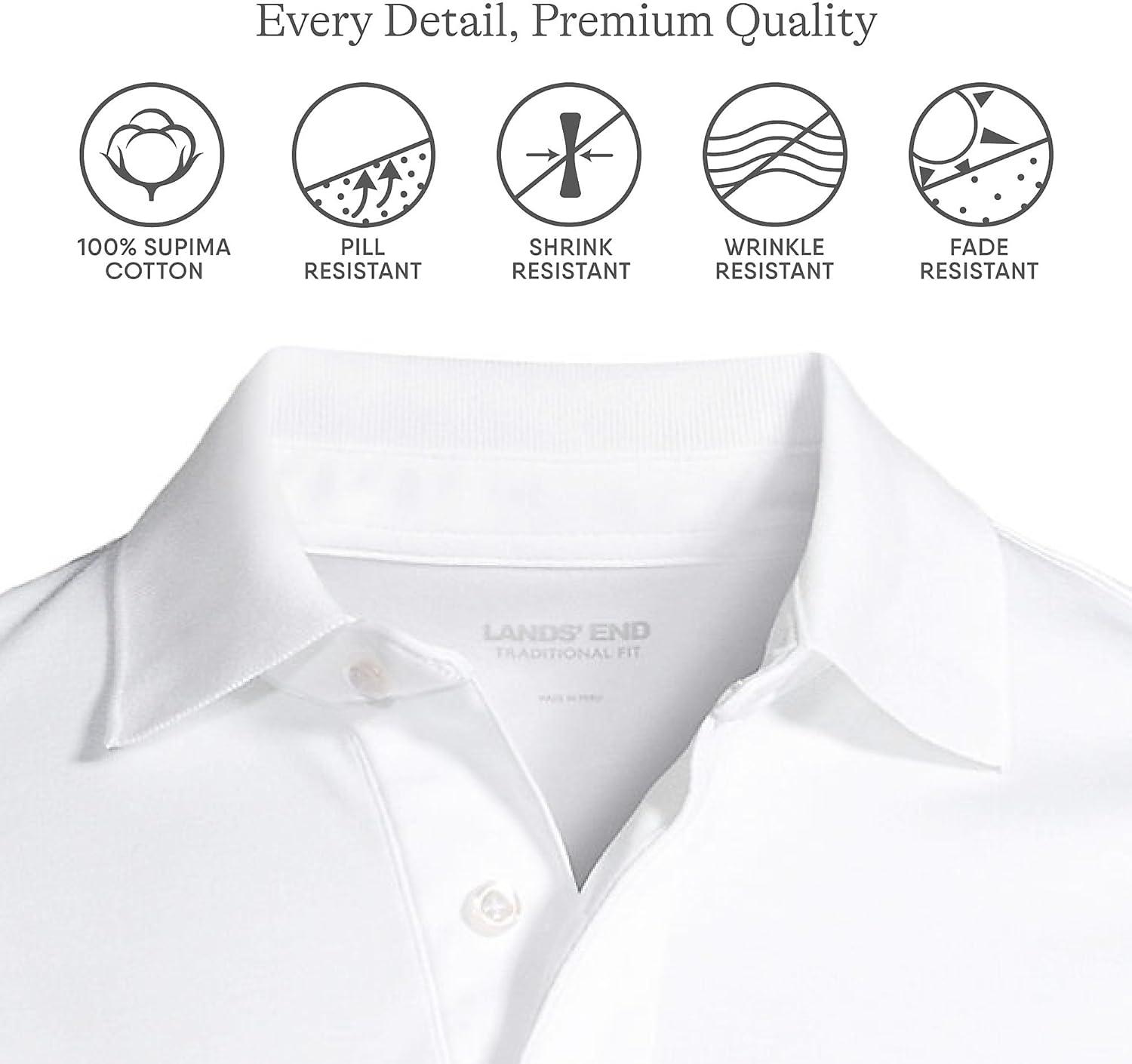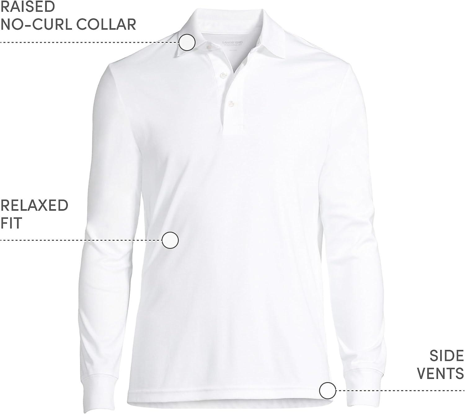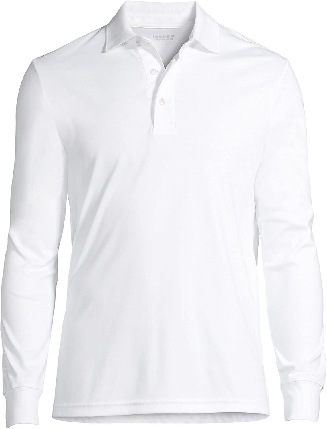 Lands’ End Men’s Long Sleeve American-Grown Supima Cotton Polo Shirt(White)