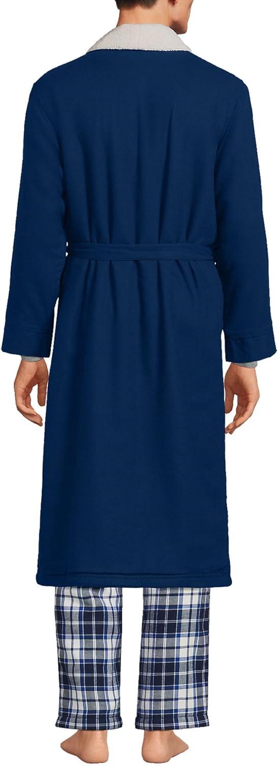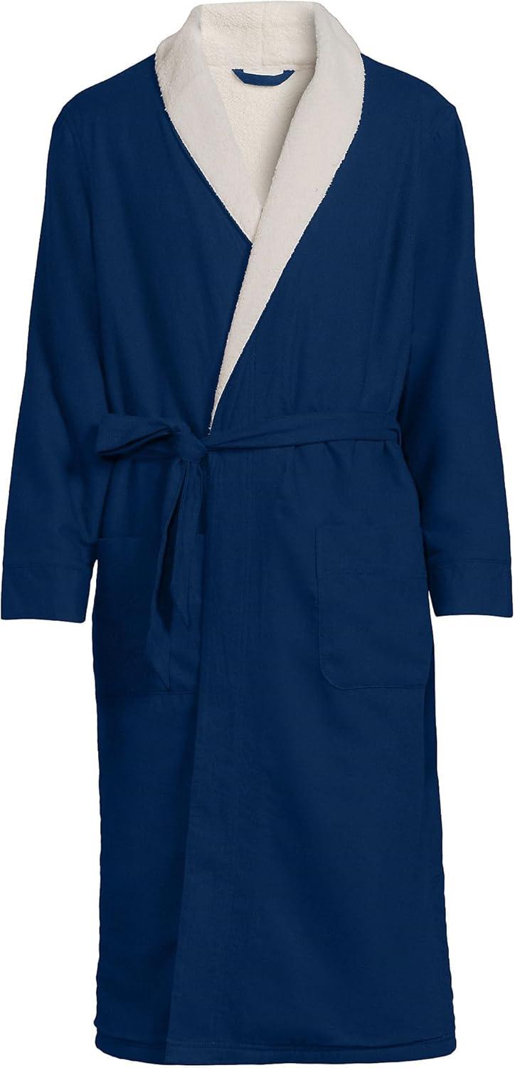 Lands’ End Men’s Sherpa Fleece Lined Flannel Robe(Deep Sea Navy)