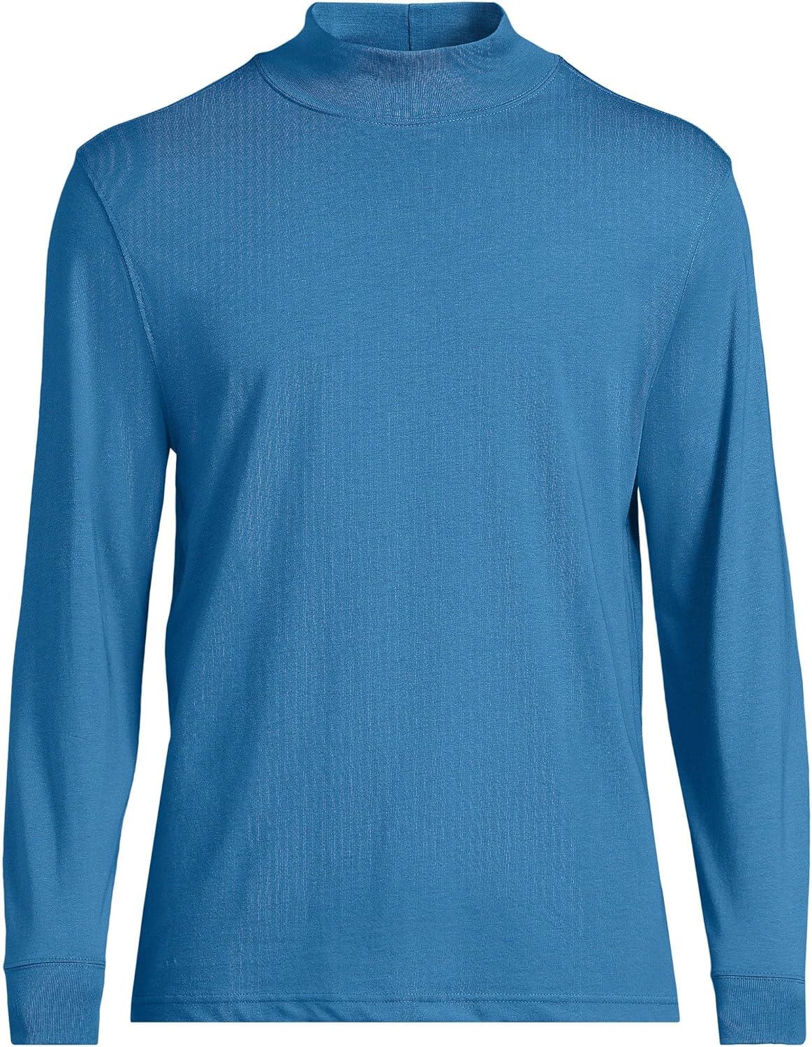 Lands’ End Men’s Super-T Cotton-Blend Mock Turtleneck Shirt(Blue Hyacinth)