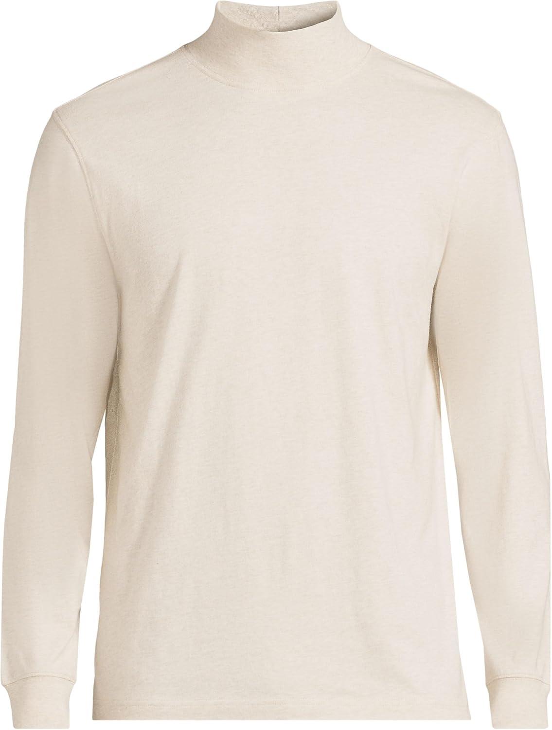 Lands’ End Men’s Super-T Cotton-Blend Mock Turtleneck Shirt(Flax Heather)