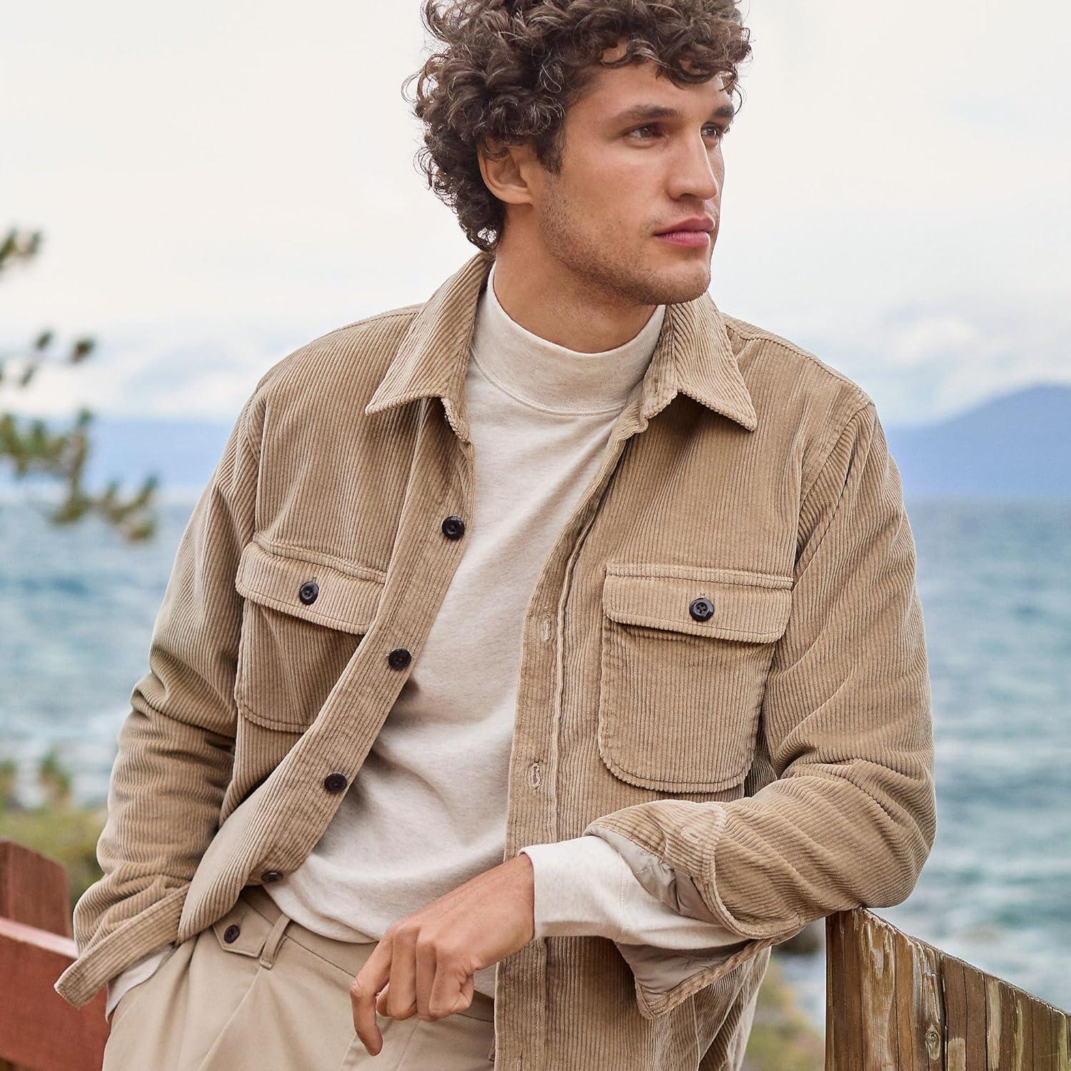Lands’ End Men’s Super Brushed Shirt Jacket(Rich Coffee/Dark Orange Plaid)