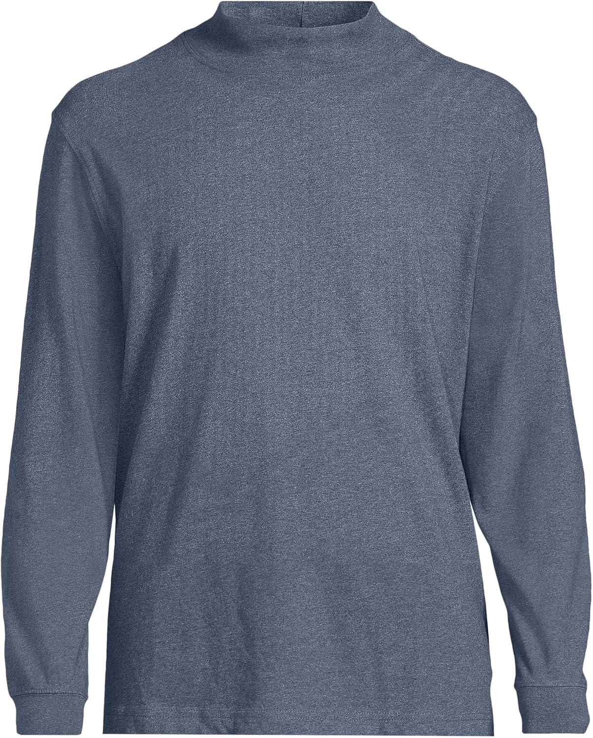 Lands’ End Men’s Super-T Cotton-Blend Mock Turtleneck Shirt(Nightfall Blue Heather)