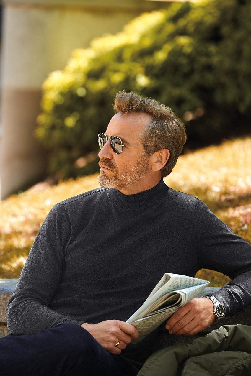 Lands’ End Men’s Super-T Cotton-Blend Mock Turtleneck Shirt(Dark Charcoal Heather)