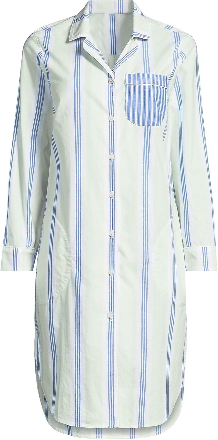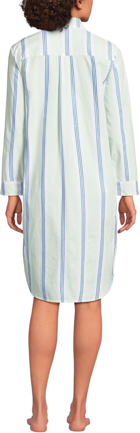 Lands’ End Women’s Cotton Poplin Long Sleeve Sleepshirt Nightgown(Icy Mint/Muted Cobalt Stripe)