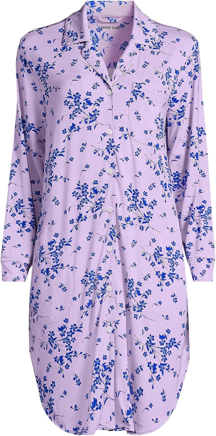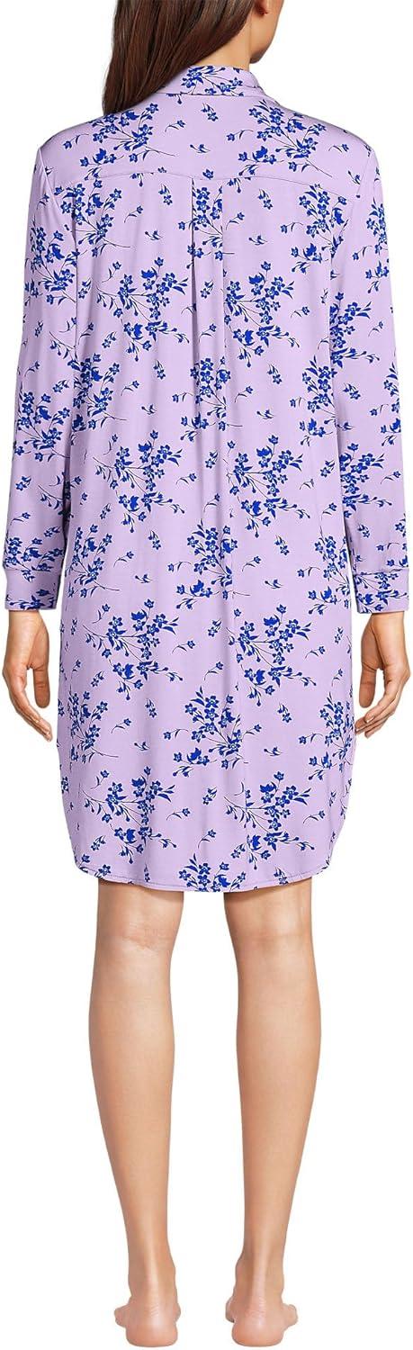 Lands’ End Women’s Cotton Poplin Long Sleeve Sleepshirt Nightgown(Lilac Petal Snow Drop Floral)