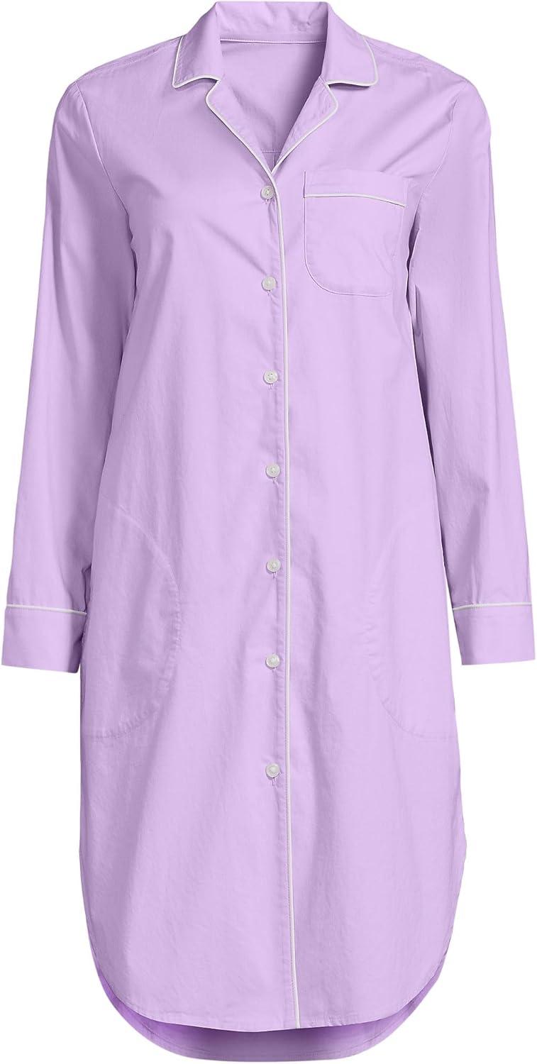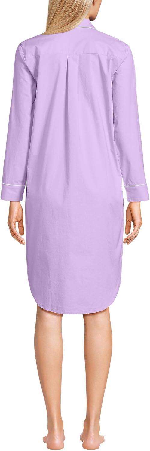 Lands’ End Women’s Cotton Poplin Long Sleeve Sleepshirt Nightgown(Whisper Lilac)