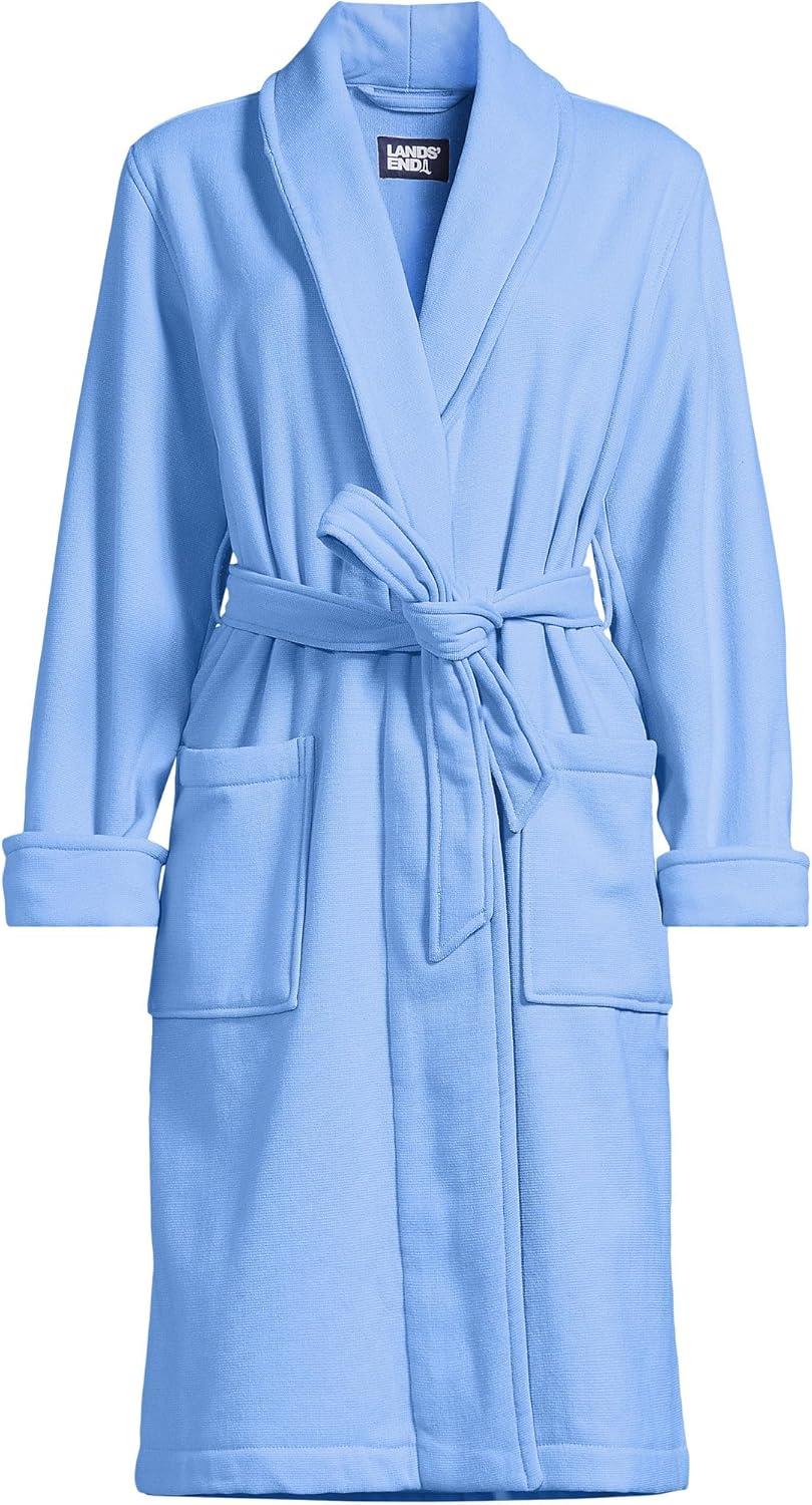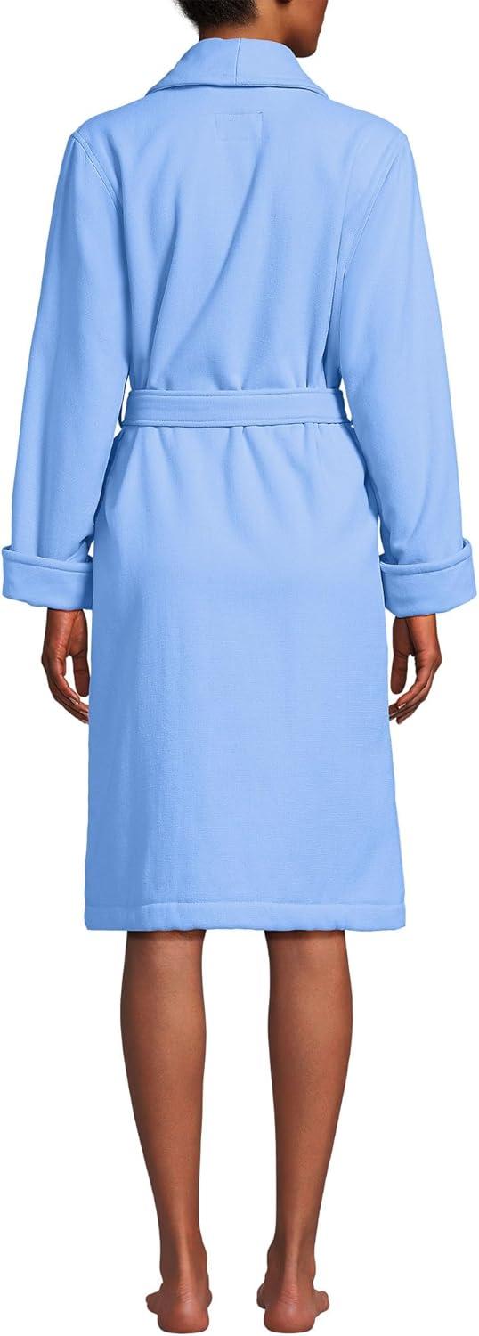 Lands’ End Women’s Cotton Terry Knee Length Spa Bath Robe(Clear Blue Sky)