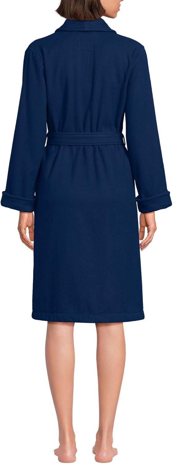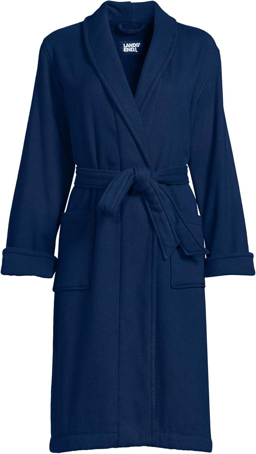 Lands’ End Women’s Cotton Terry Knee Length Spa Bath Robe(Deep Sea Navy)