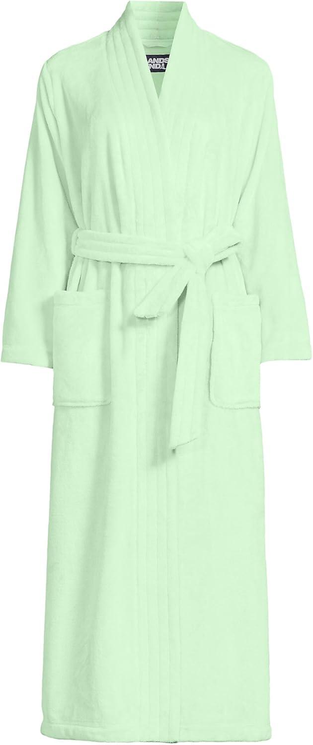 Lands’ End Women’s Cozy Plush Long Wrap Robe(Icy Mint Green)