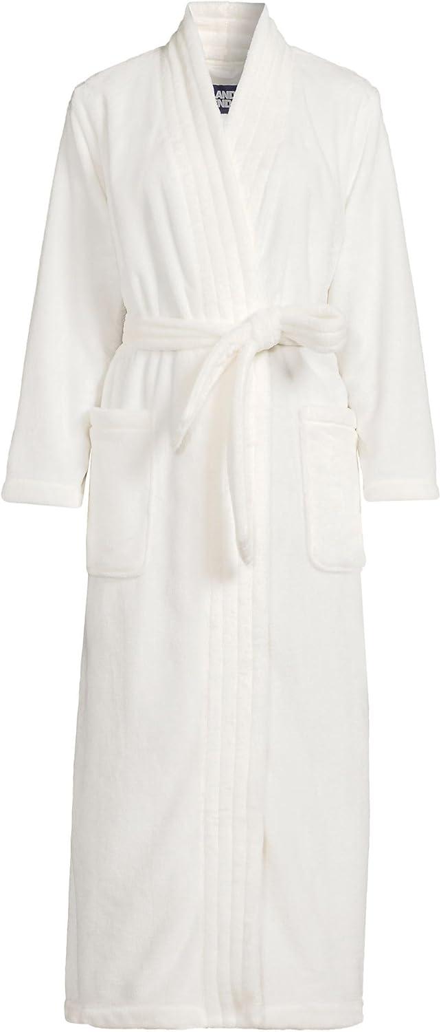 Lands’ End Women’s Cozy Plush Long Wrap Robe(Ivory)