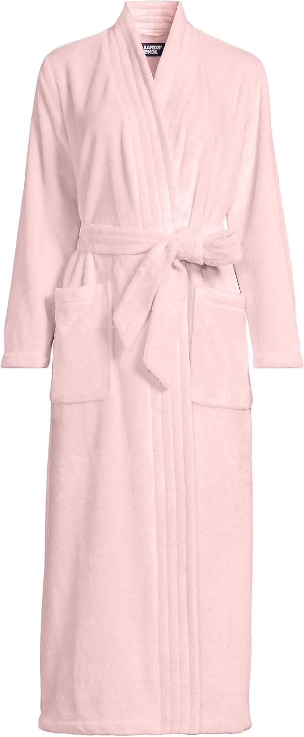Lands’ End Women’s Cozy Plush Long Wrap Robe(Sea Salt Pink)