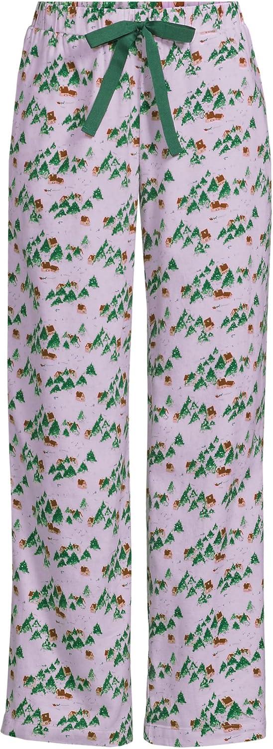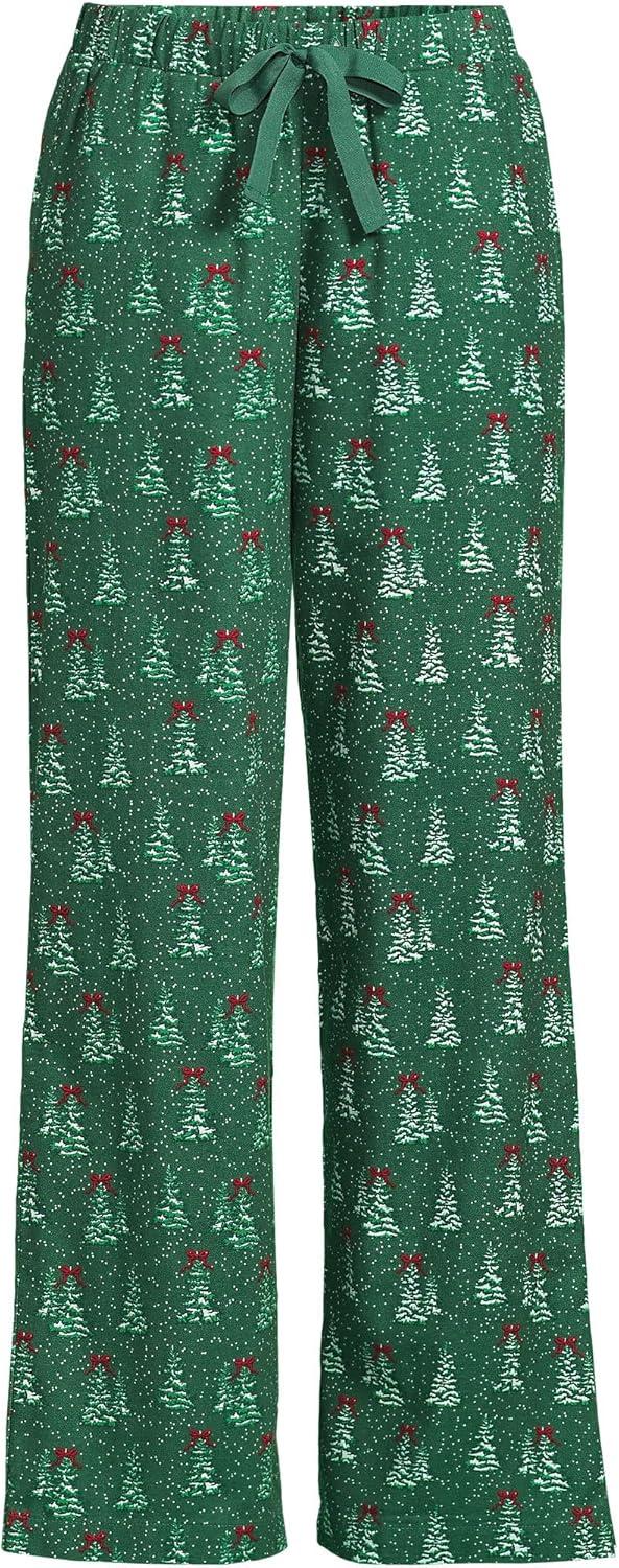 Lands’ End Women’s Print Flannel Pajama Pants(Light Emerald Snowy Trees)