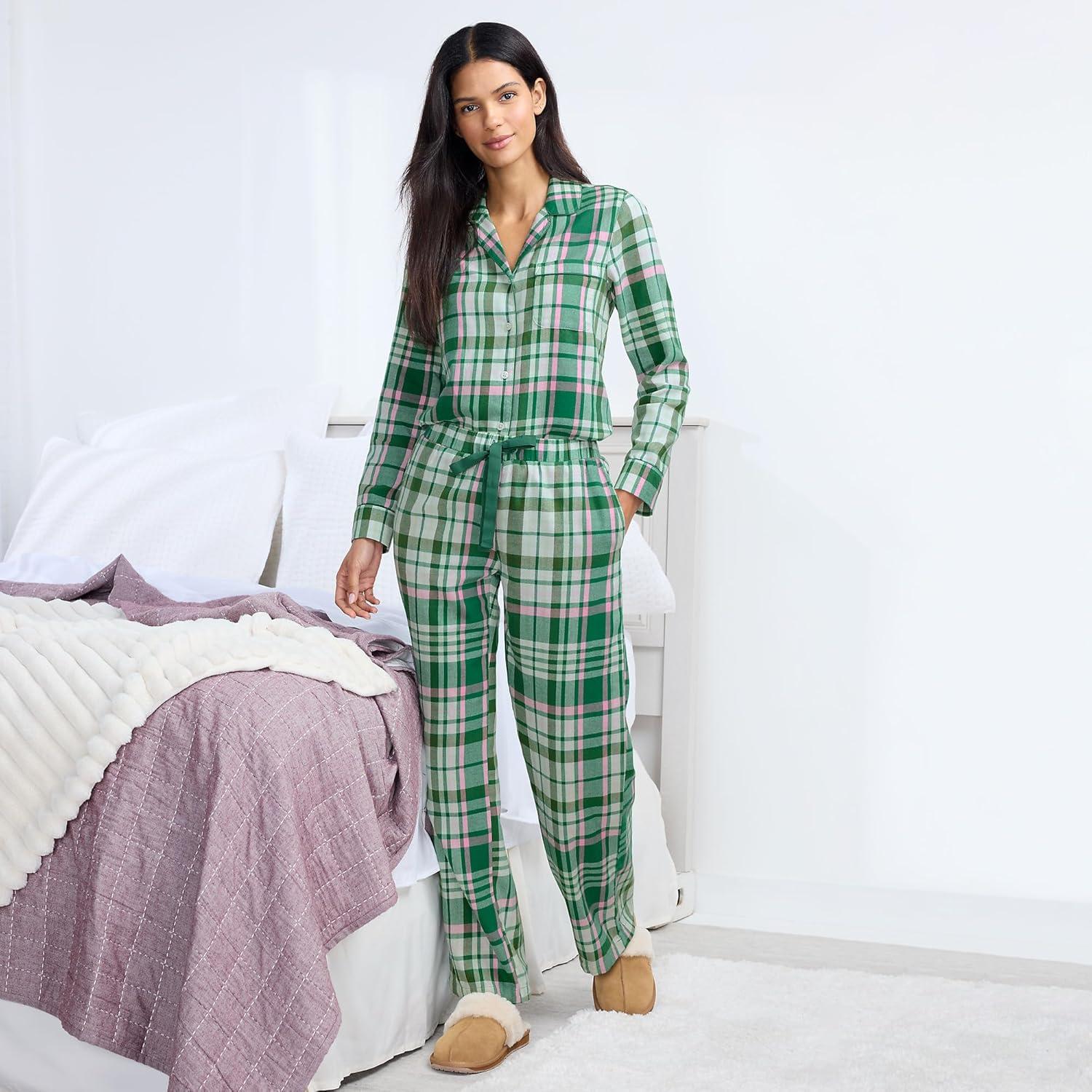 Lands’ End Women’s Print Flannel Pajama Pants(Light Emerald Blackwatch)