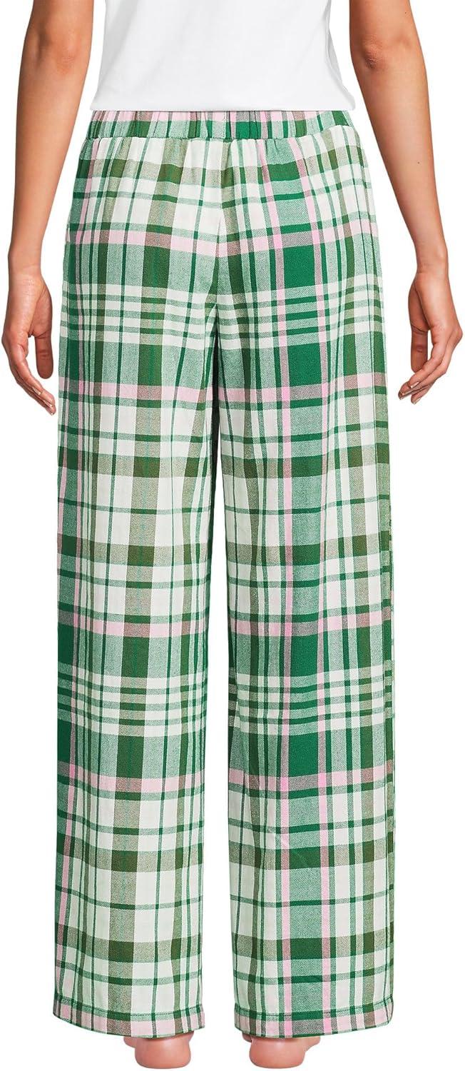 Lands’ End Women’s Print Flannel Pajama Pants(Light Emerald/Pink Plaid)