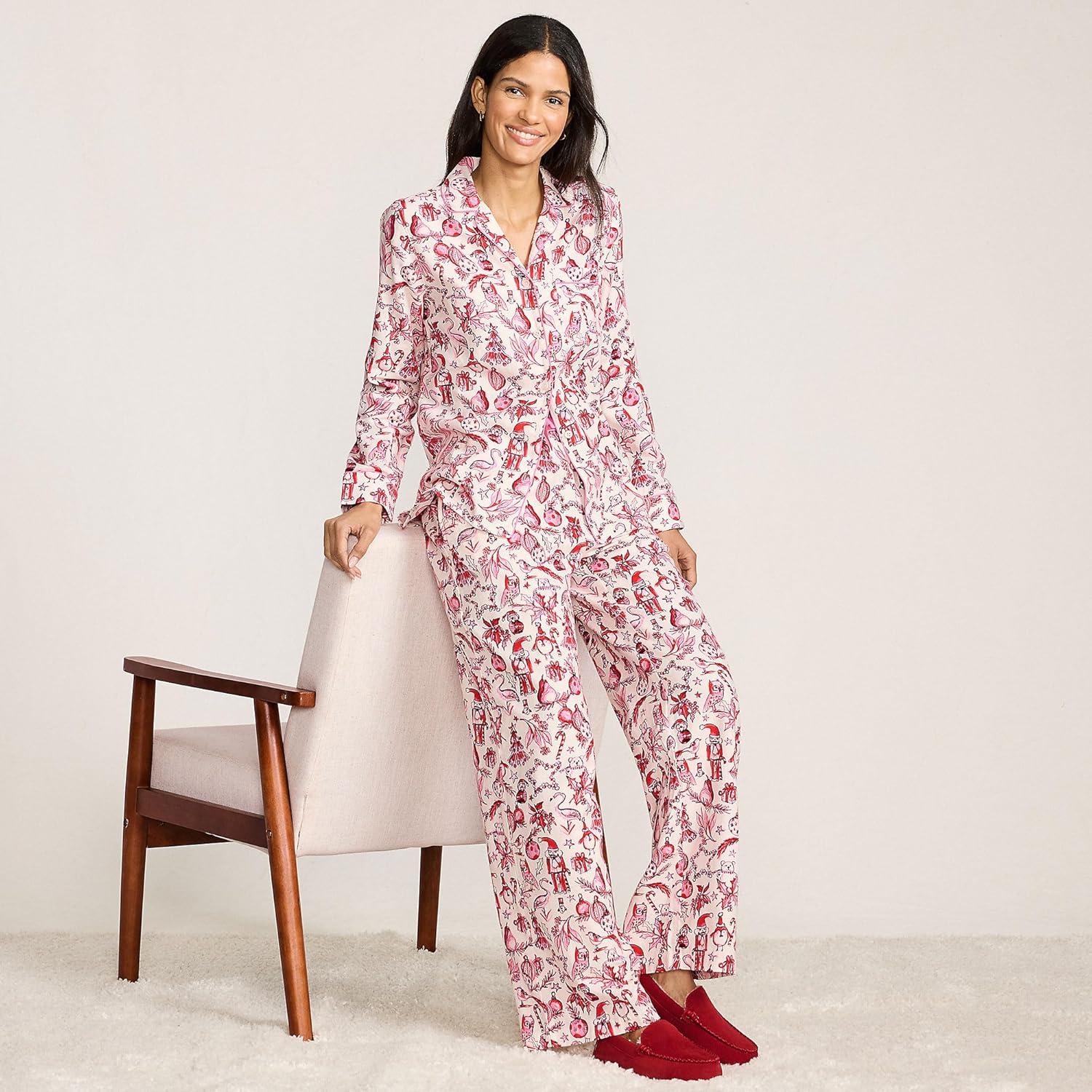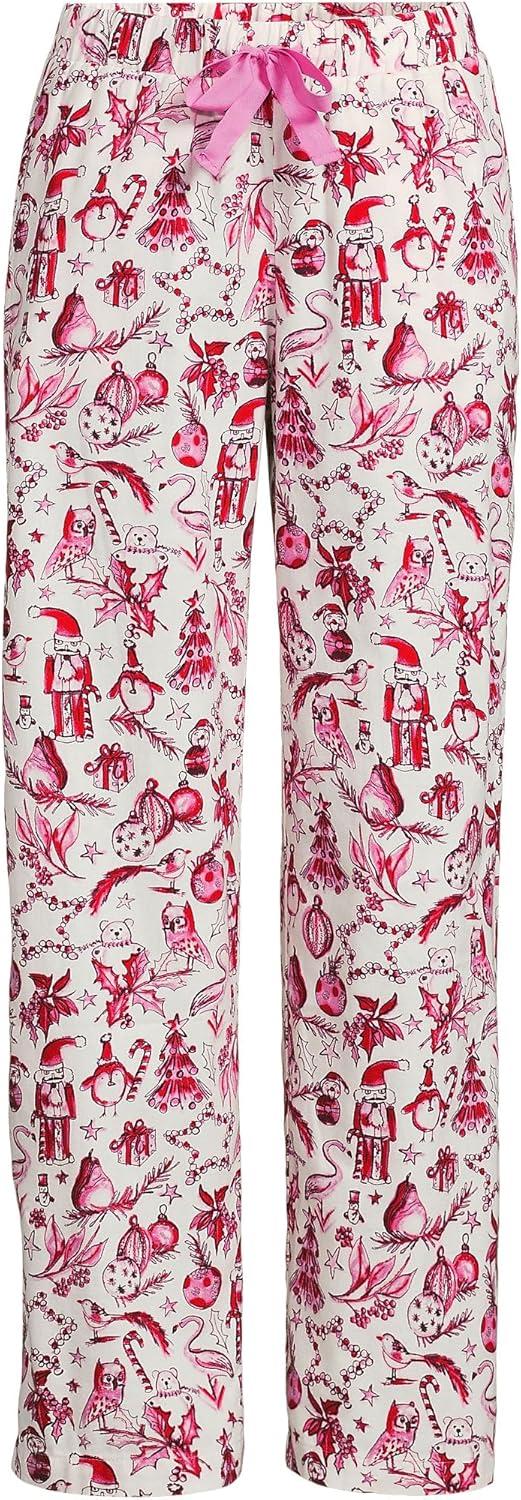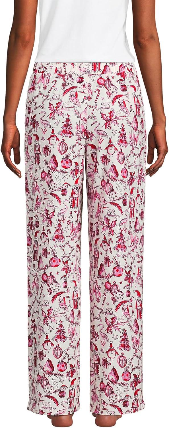 Lands’ End Women’s Print Flannel Pajama Pants(Pink/Red Festive Critters)