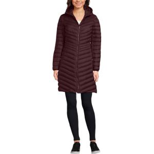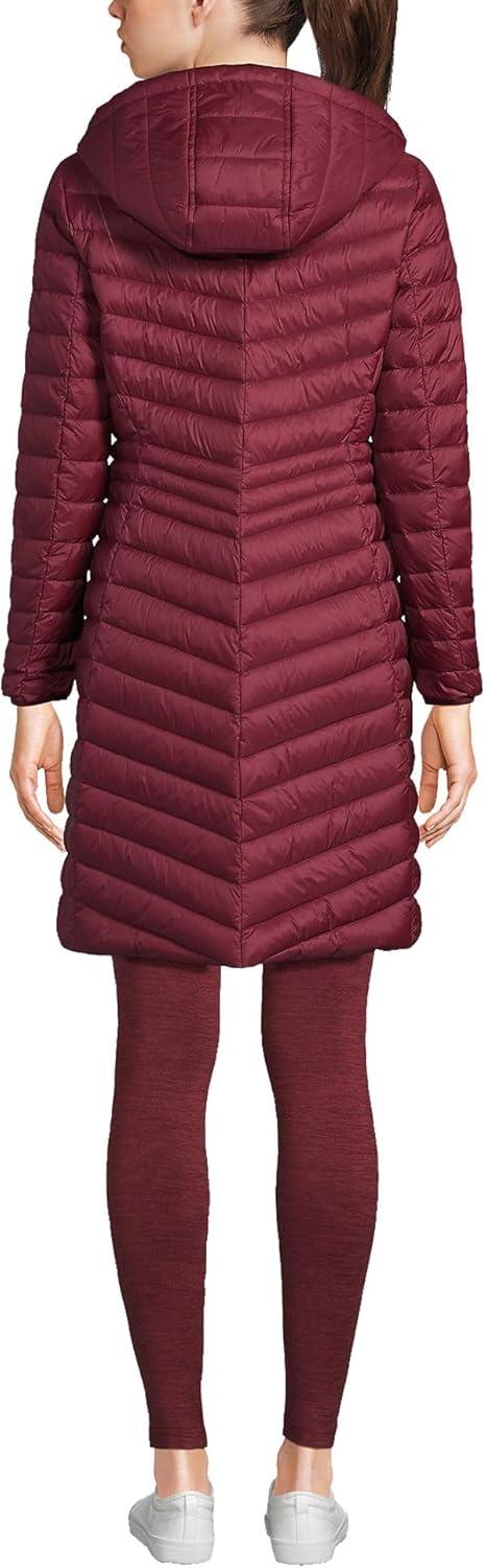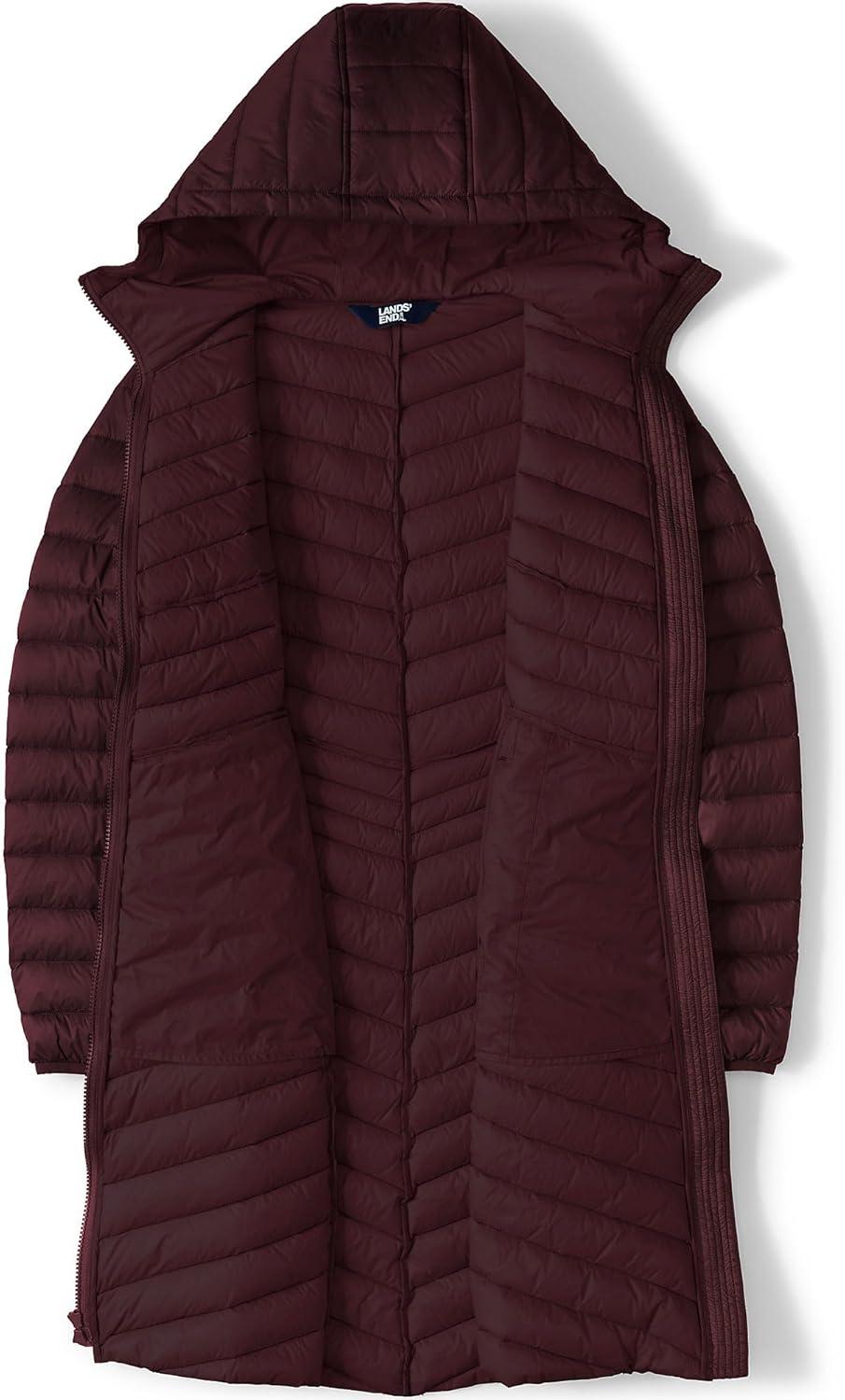 Lands’ End Women’s Ultralight Packable Long Down Coat(Burgundy)