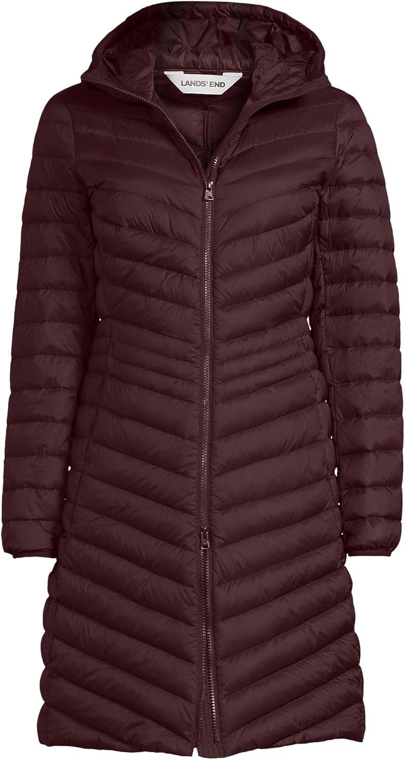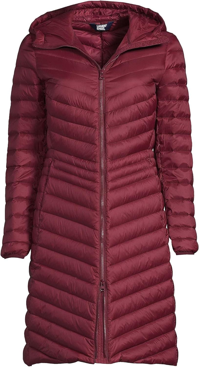 Lands’ End Women’s Ultralight Packable Long Down Coat(Lush Burgundy)