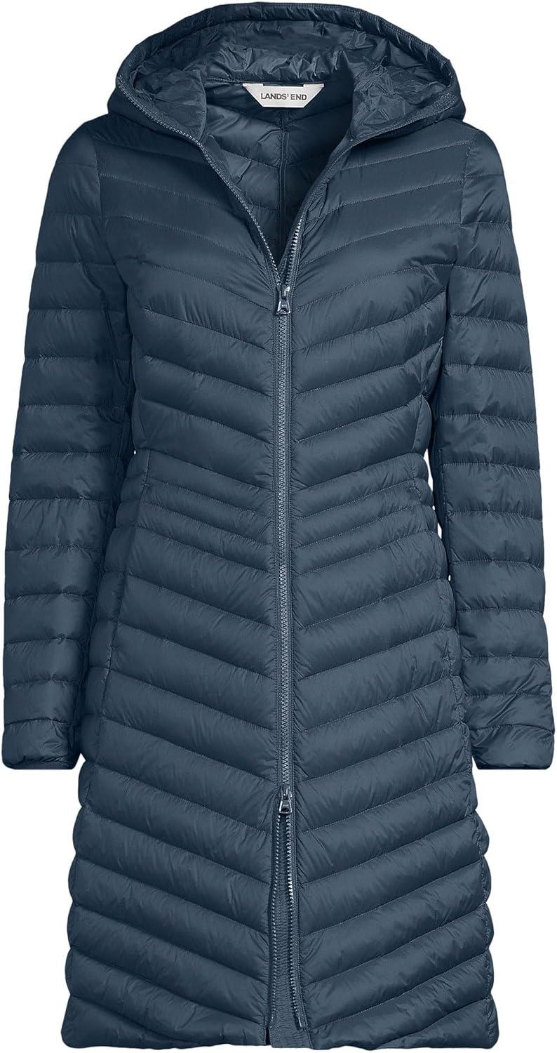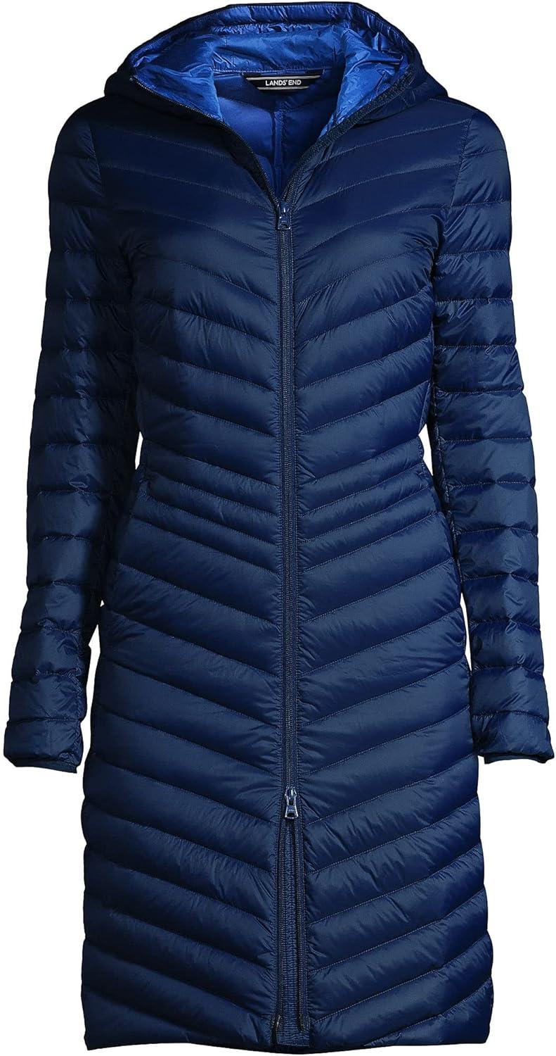 Lands’ End Women’s Ultralight Packable Long Down Coat(Deep Sea Navy)