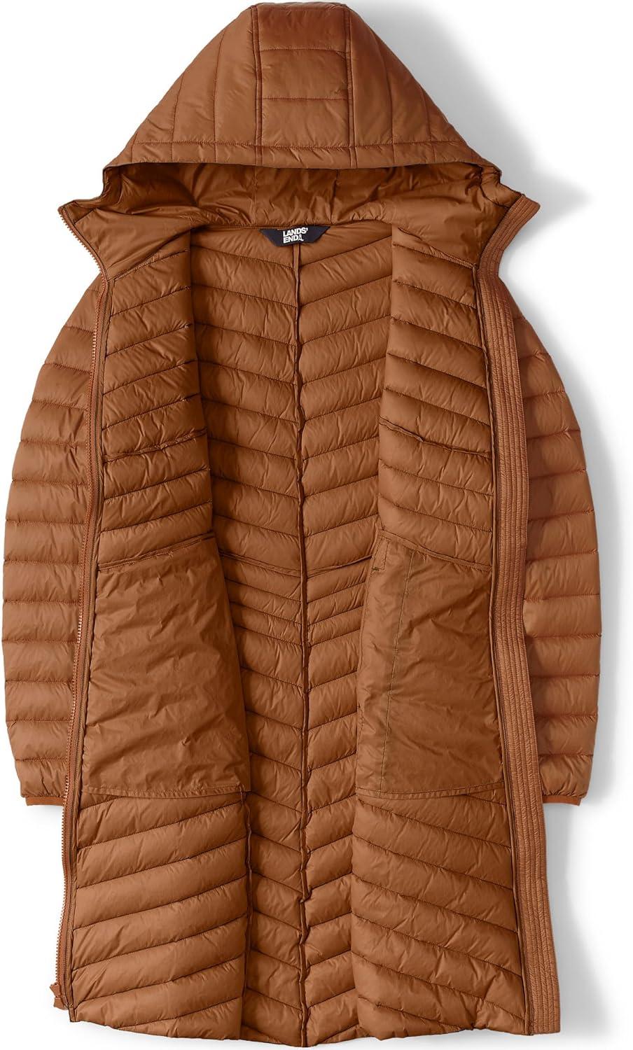 Lands’ End Women’s Ultralight Packable Long Down Coat(Rich Ginger Brown)