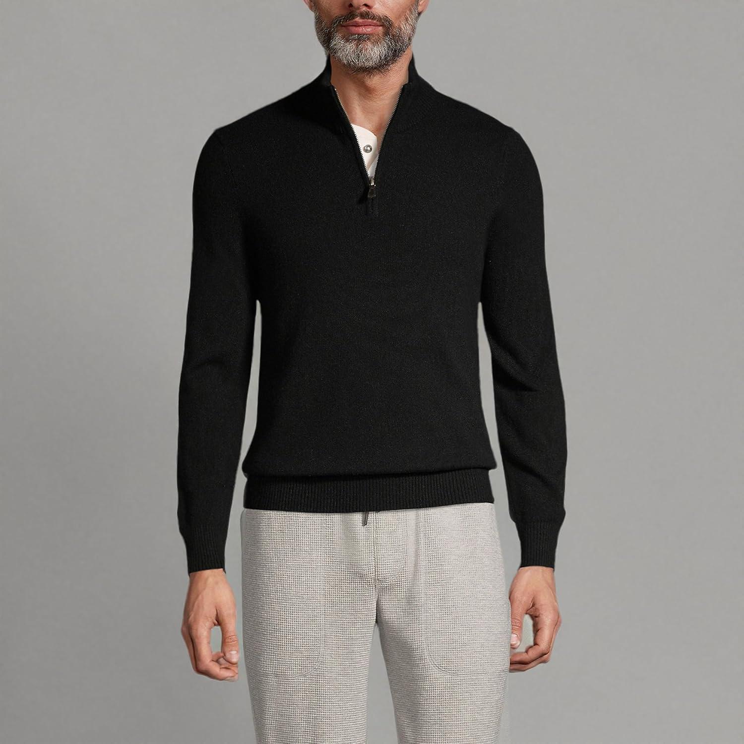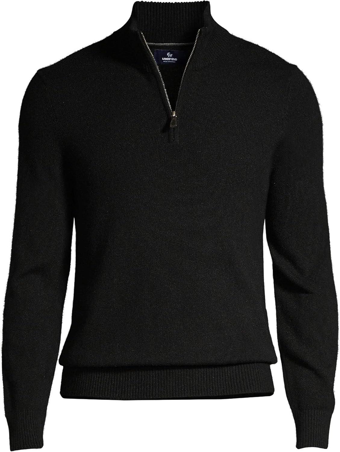 Lands’ End Men’s Fine Gauge Cashmere Quarter Zip(Black)