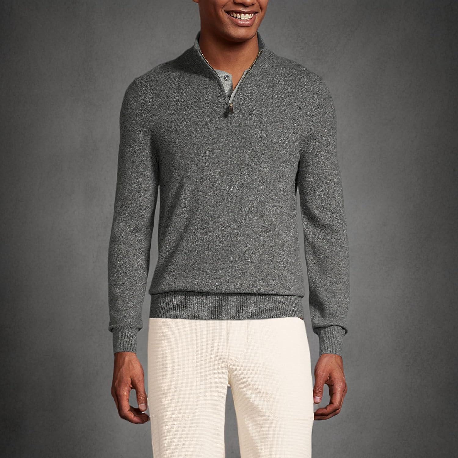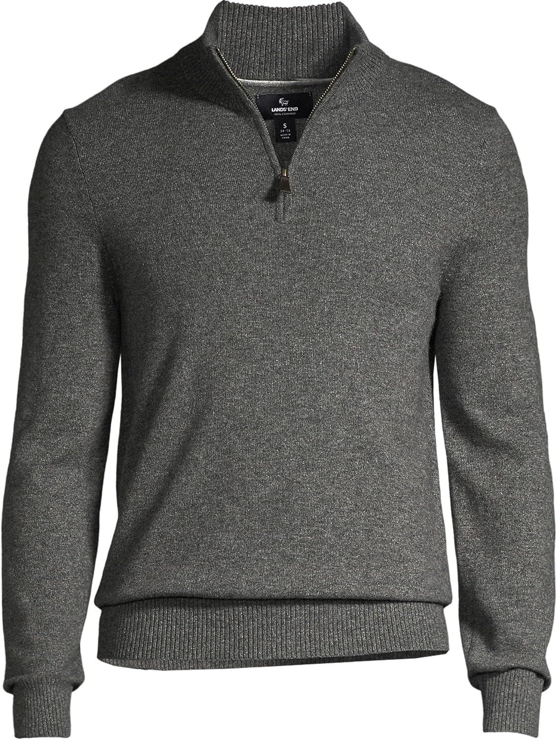 Lands’ End Men’s Fine Gauge Cashmere Quarter Zip(Charcoal Heather)