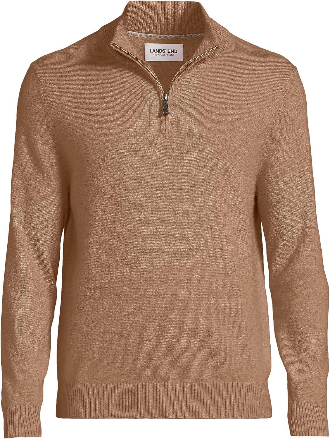 Lands’ End Men’s Fine Gauge Cashmere Quarter Zip(Classic Camel)