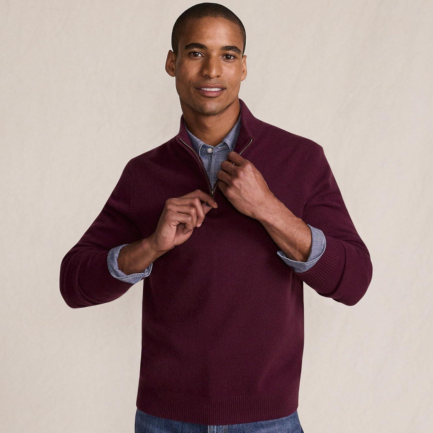 Lands’ End Men’s Fine Gauge Cashmere Quarter Zip(Lush Burgundy)