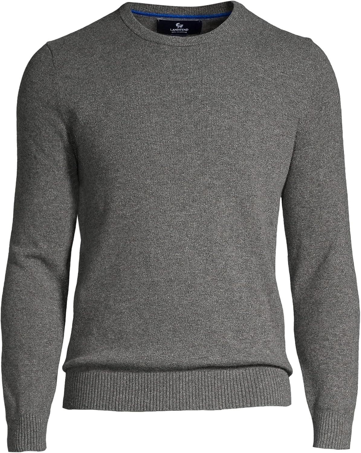 Lands’ End Men’s Drifter Cotton Crewneck Sweater(Dark Charcoal Heather)