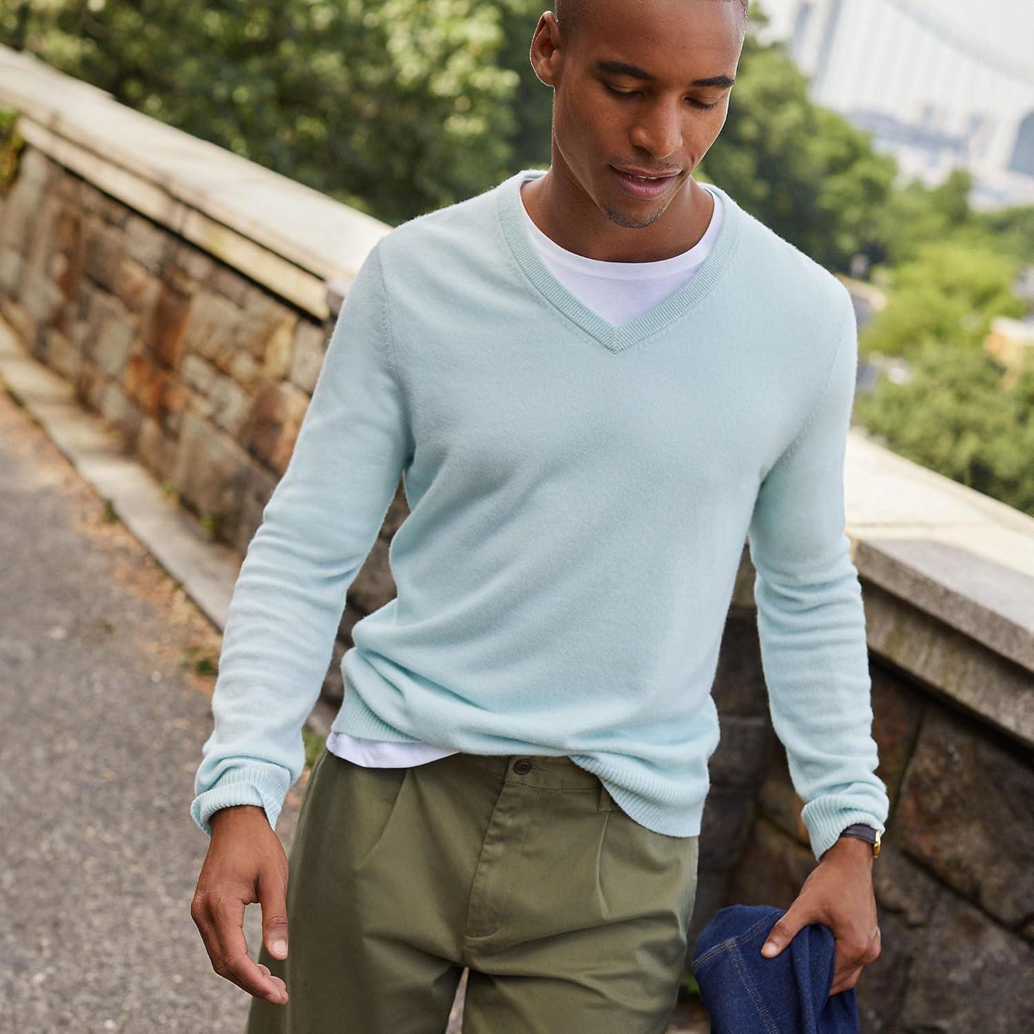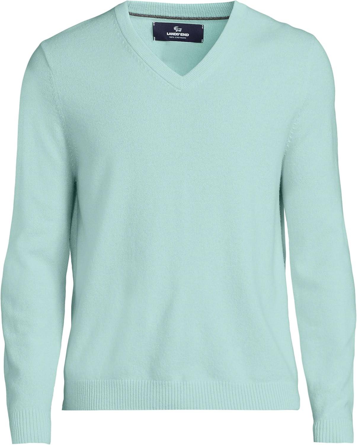 Lands’ End Men’s Fine Gauge Cashmere V-Neck Sweater(Aqua Breeze)