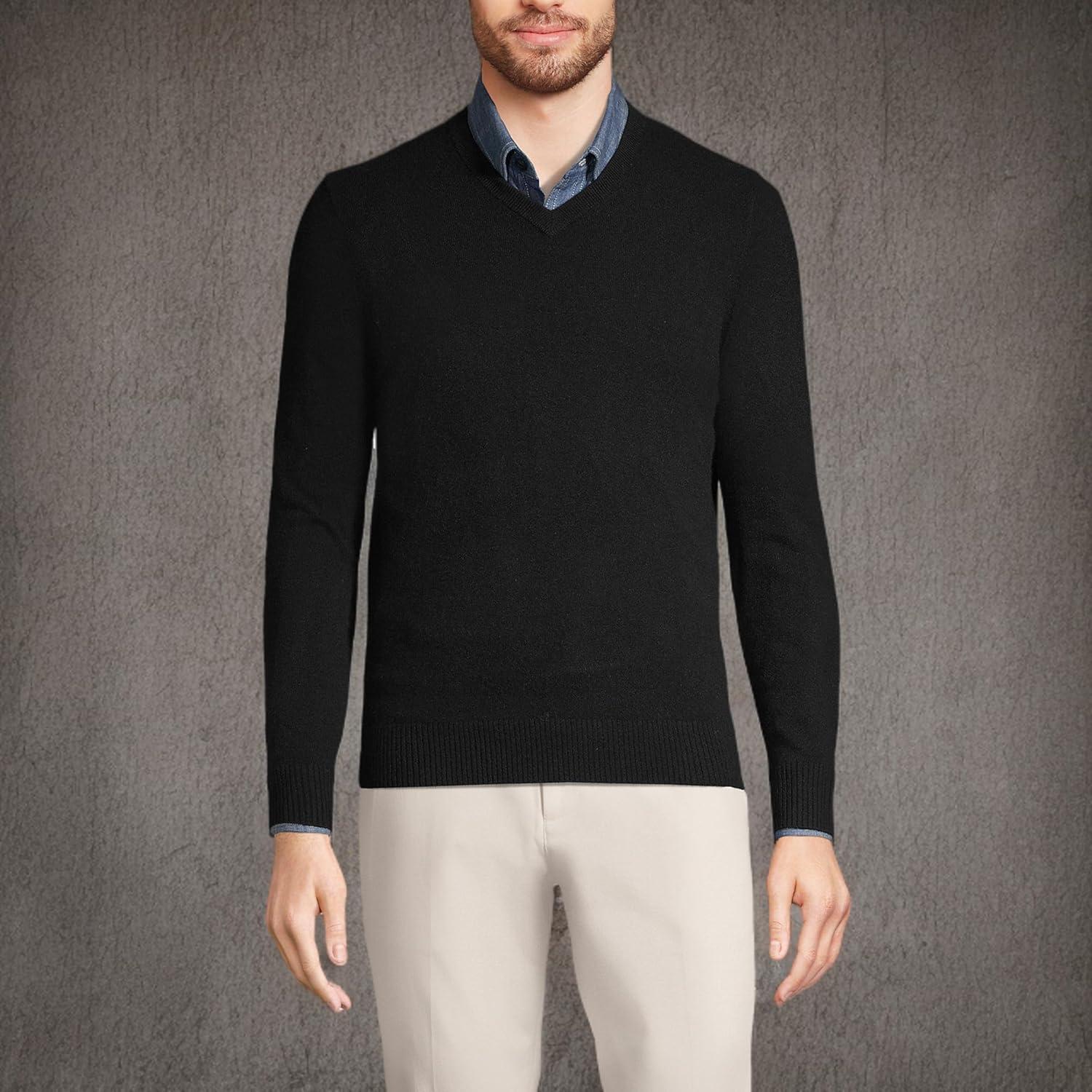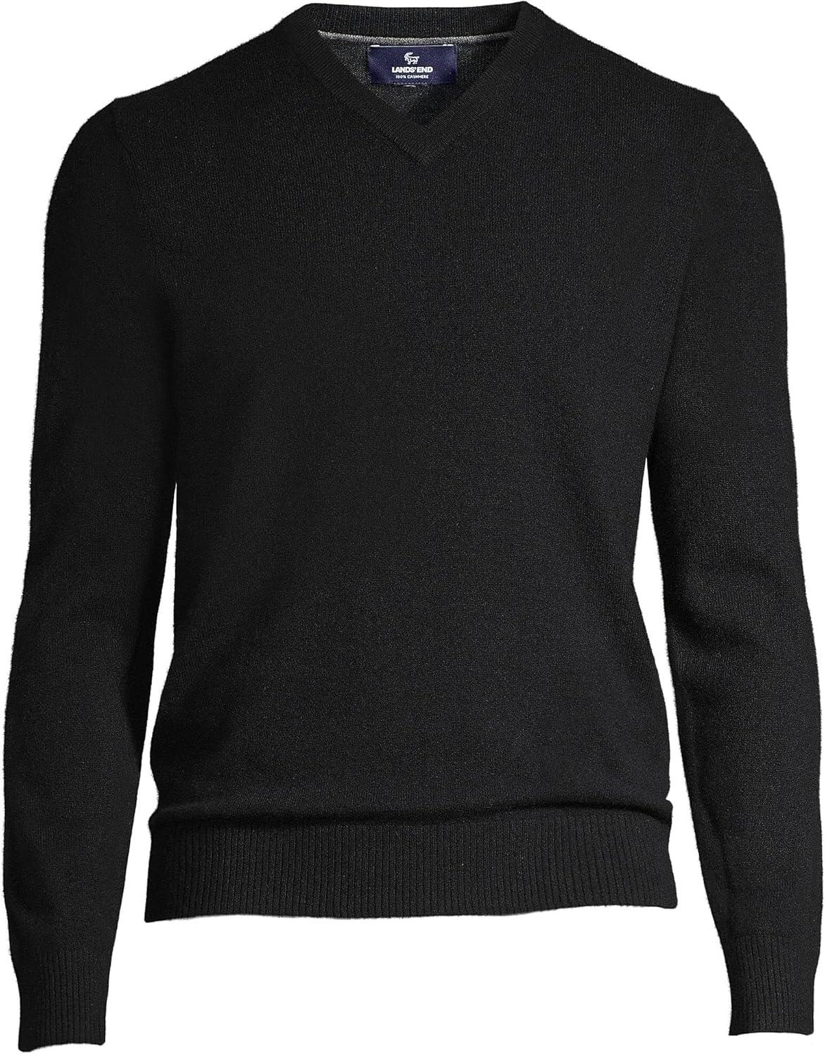Lands’ End Men’s Fine Gauge Cashmere V-Neck Sweater(Black)