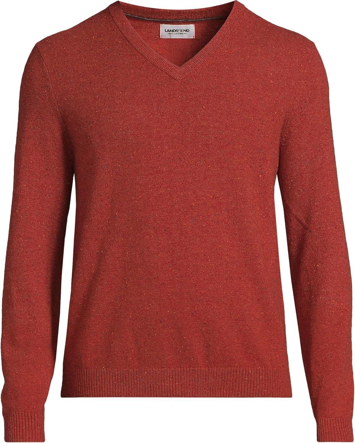 Lands’ End Men’s Fine Gauge Cashmere V-Neck Sweater(Bourbon Donegal)