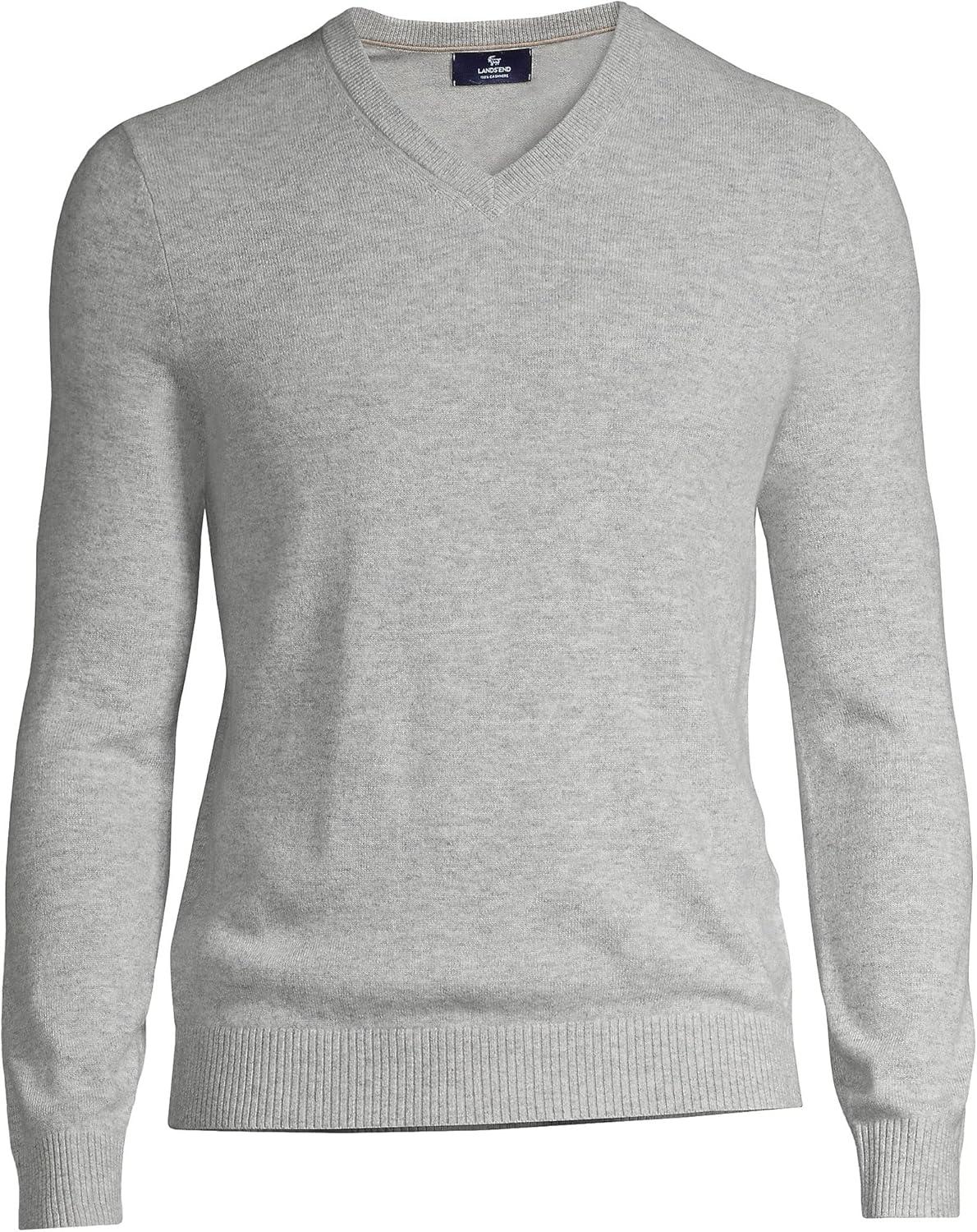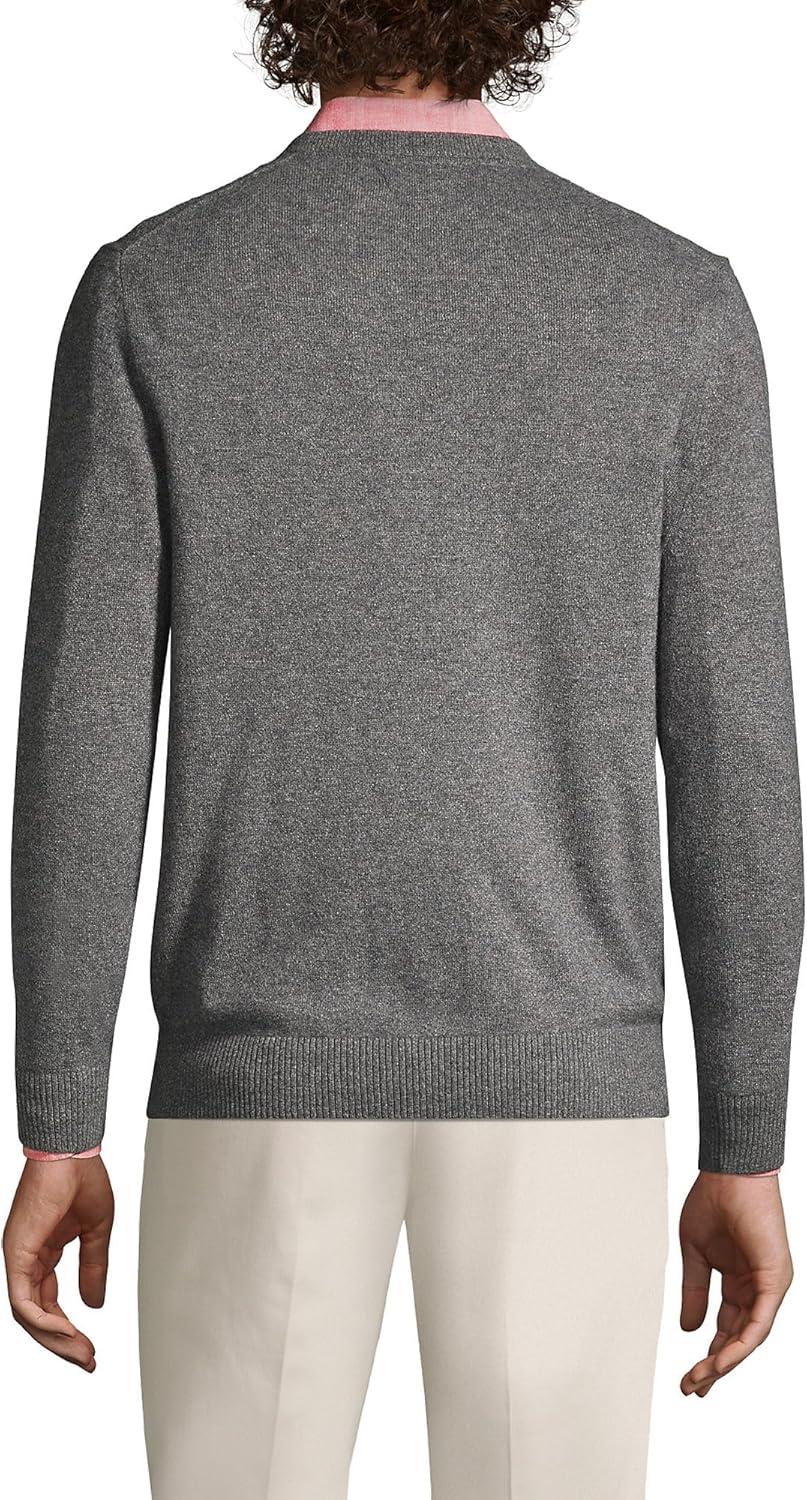 Lands’ End Men’s Fine Gauge Cotton V Neck Sweater(Gray Heather)
