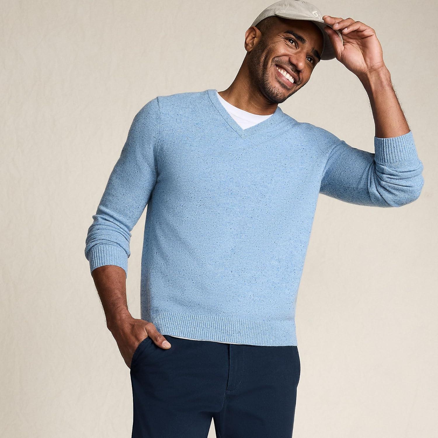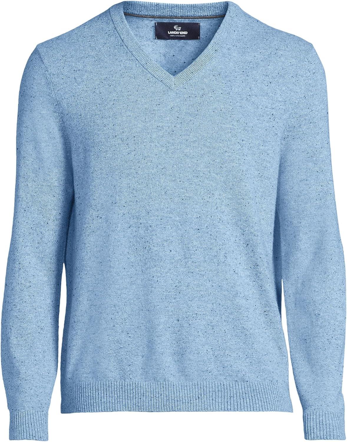 Lands’ End Men’s Fine Gauge Cashmere V-Neck Sweater(Cloudy Blue Heather Donegal)
